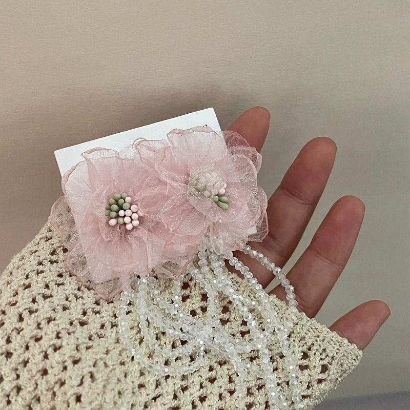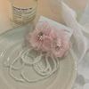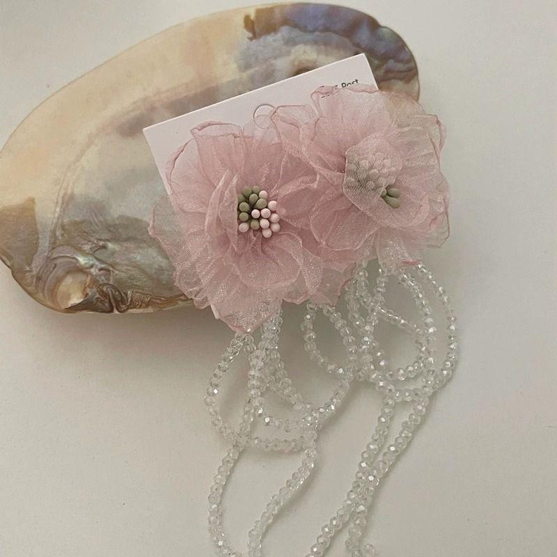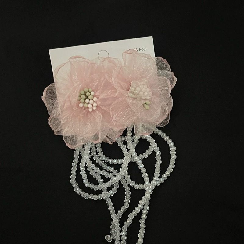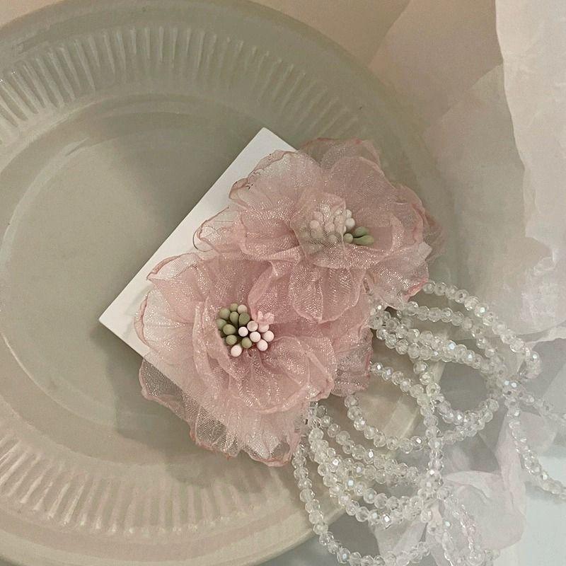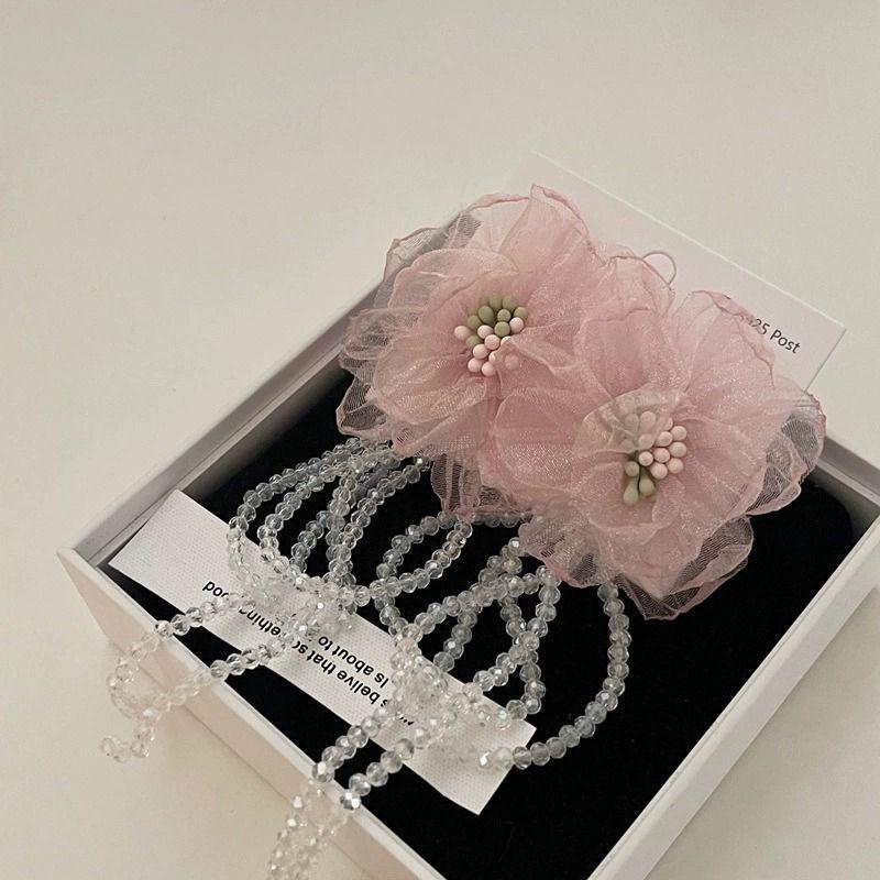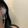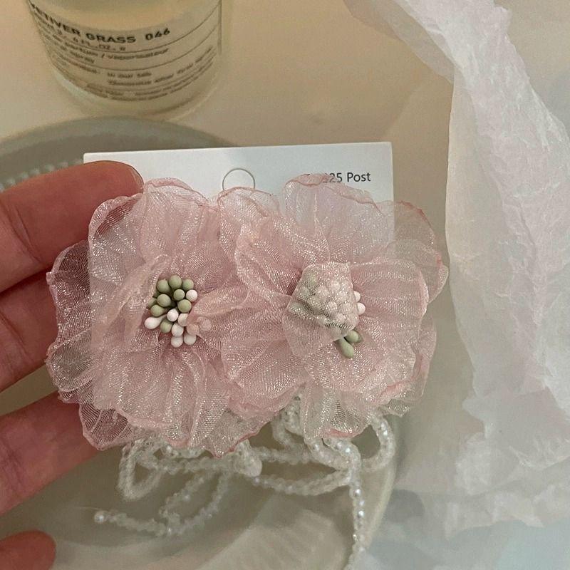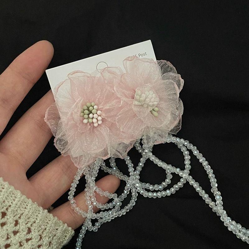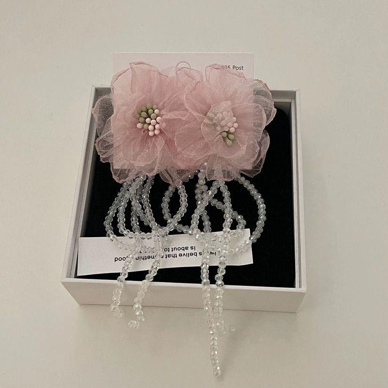 Pendientes de borlas de flores tridimensionales rosas, pendientes de hada de cristal de gasa, estilo festivo, ligeros, de lujo, hechos a mano.