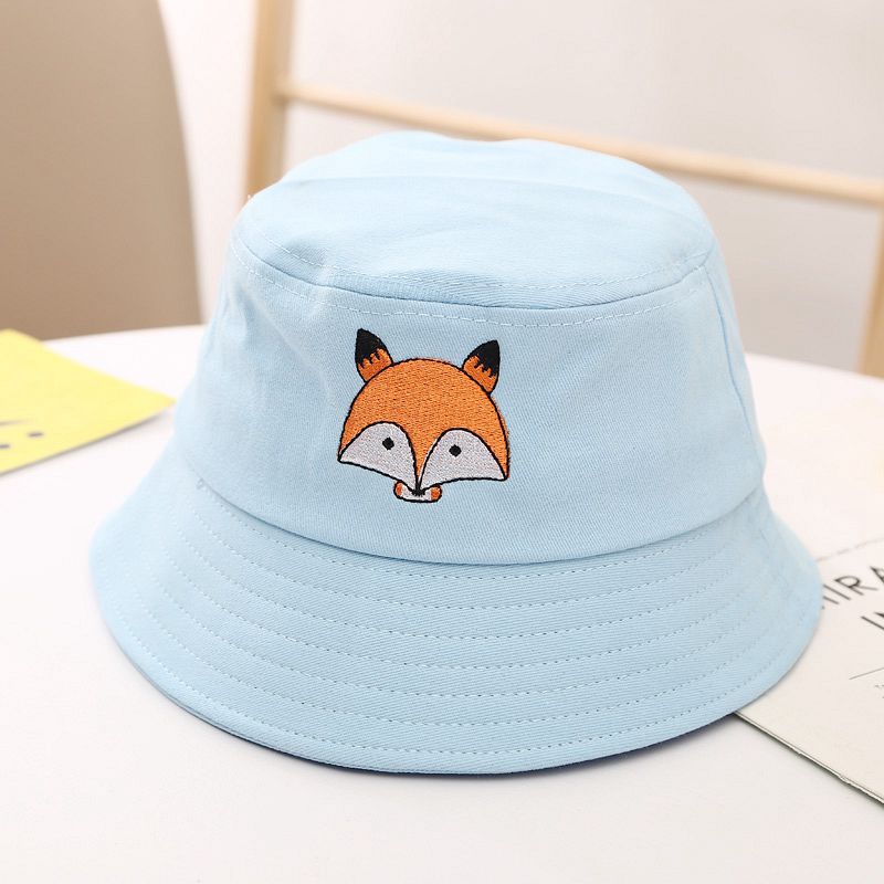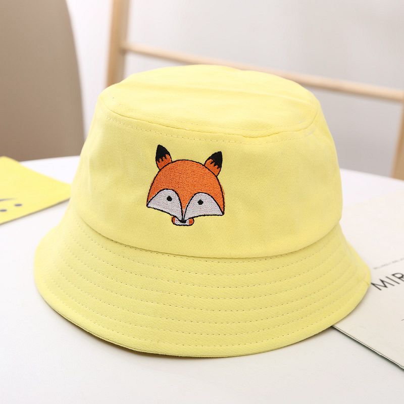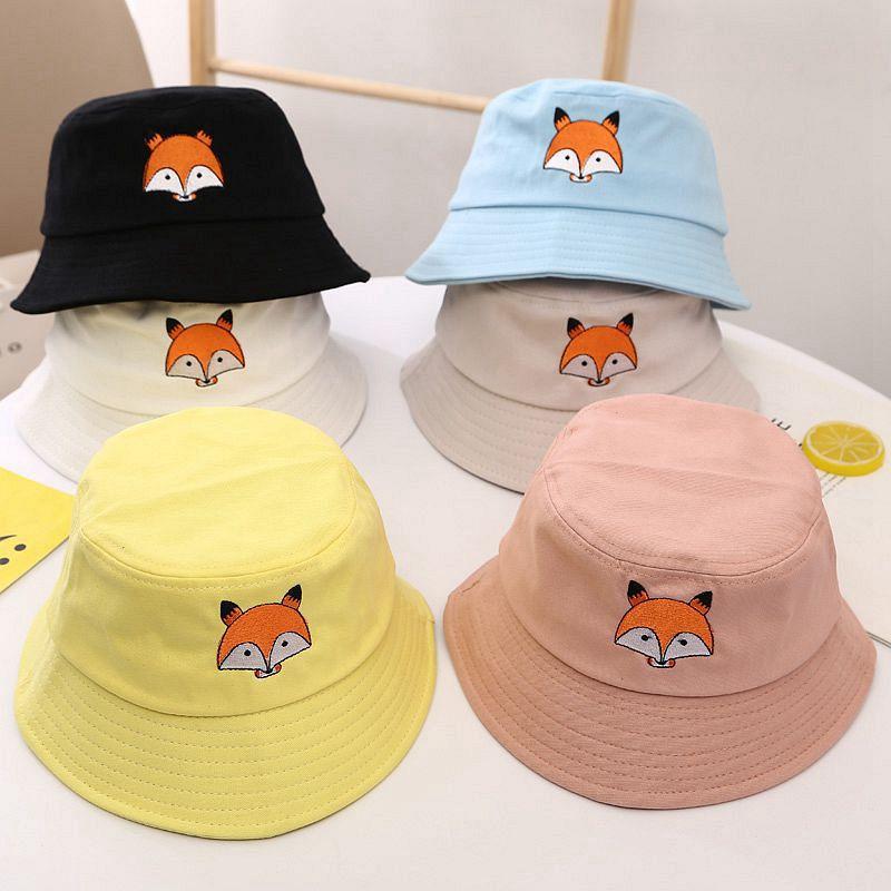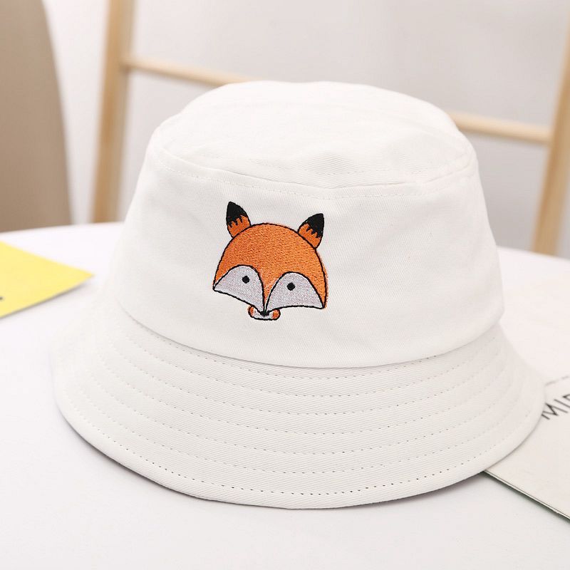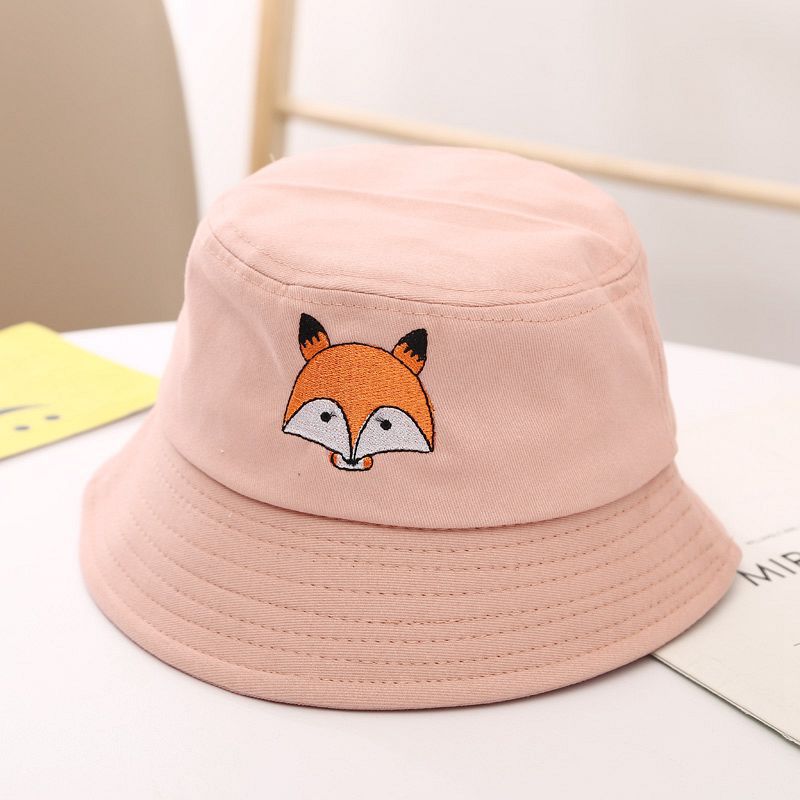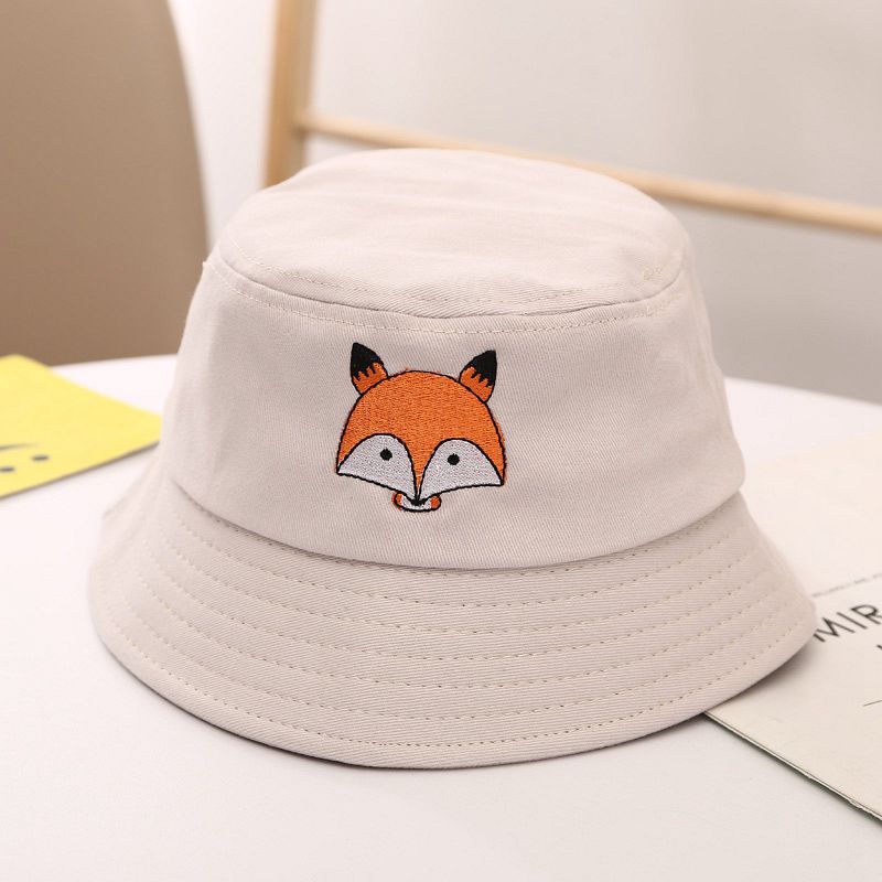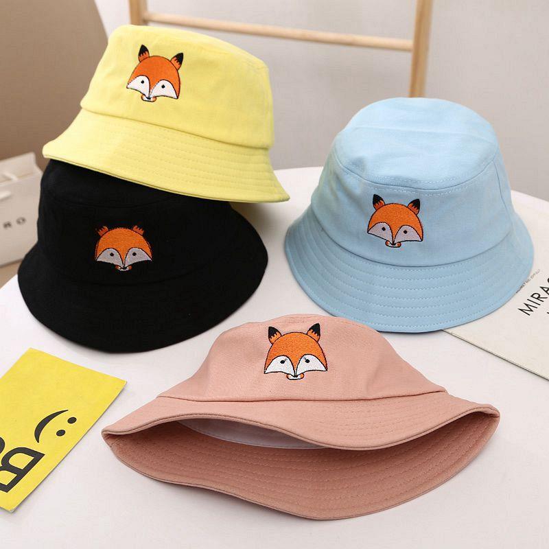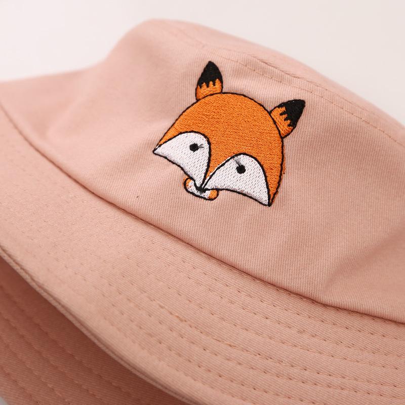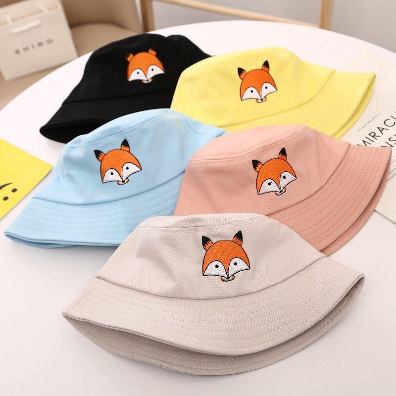 Sombrero de Mujer Nuevo Estilo Coreano Bordado de Zorro de Dibujos Animados Sombrero de Pescador para Bebé Primavera y Verano para Exterior Sombrero de Cubeta para Niños Sombrero para el Sol
