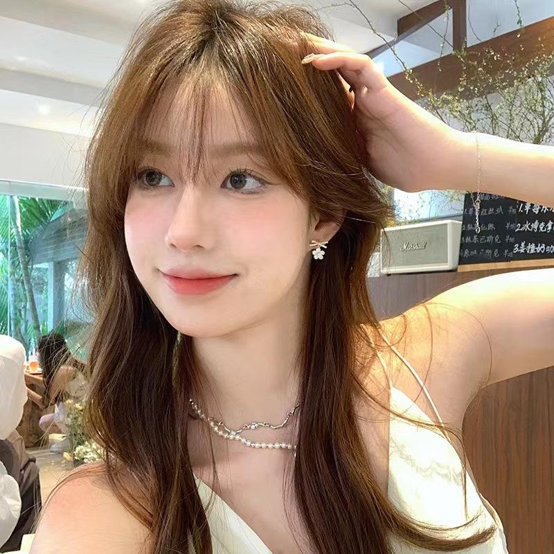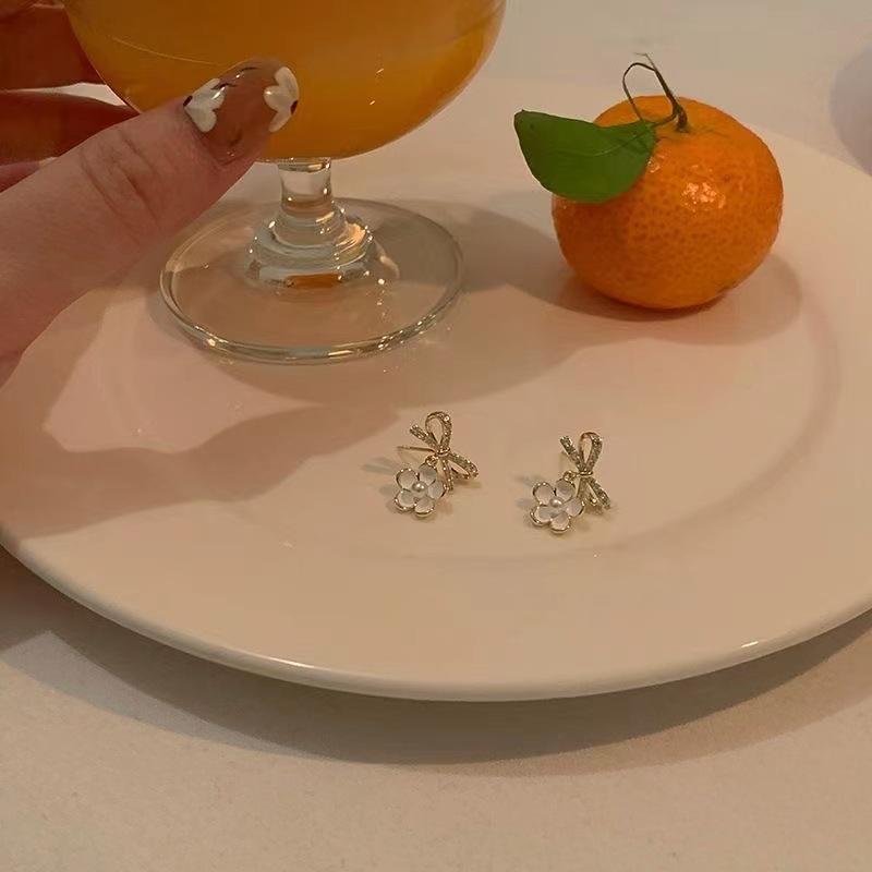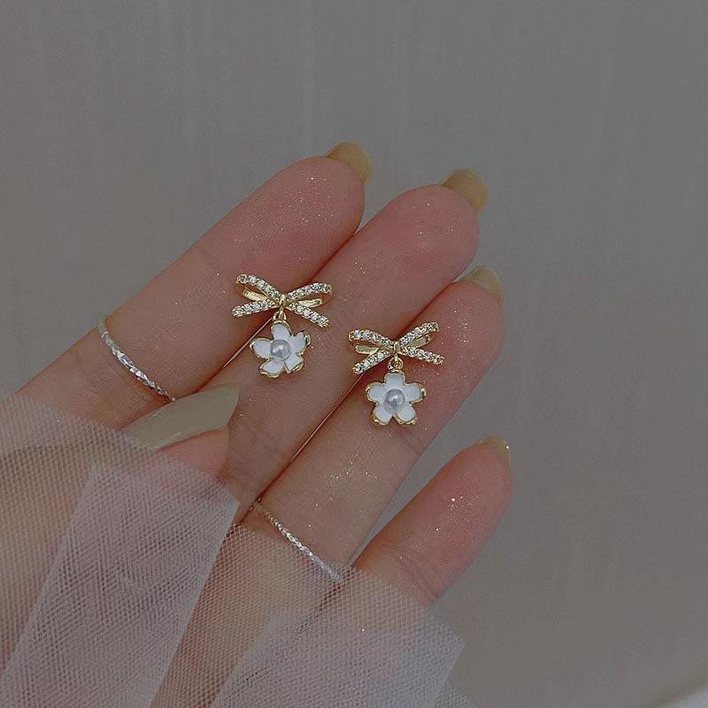 Pendientes de flor de lazo, diseño de nicho femenino, pendientes de lujo ligeros de alta gama, pendientes de estilo coreano, dulces y elegantes.