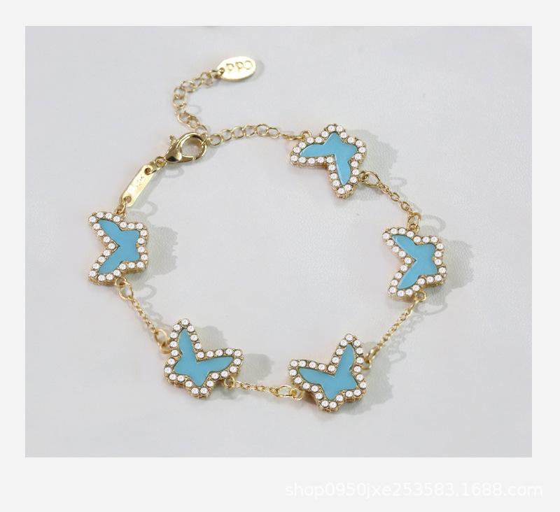 B- 034 outer ring drill double-sided butterfly bracelet blue and green