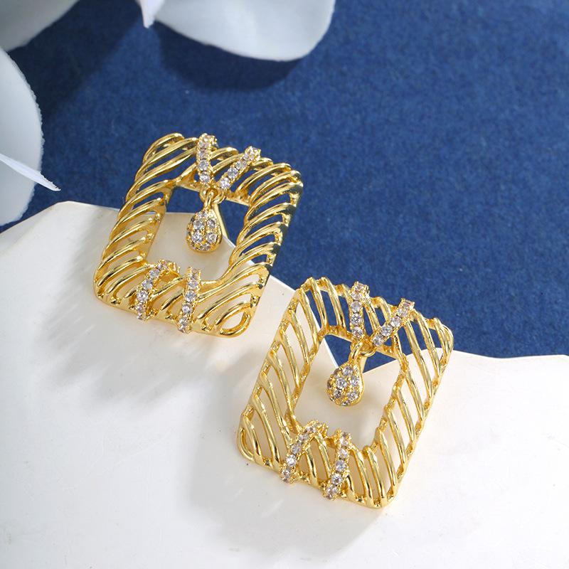 Pendientes Xuping de aleación de cobre con forma de triángulo cuadrado redondo, de alta gama, con un toque distintivo de estilo europeo y americano.