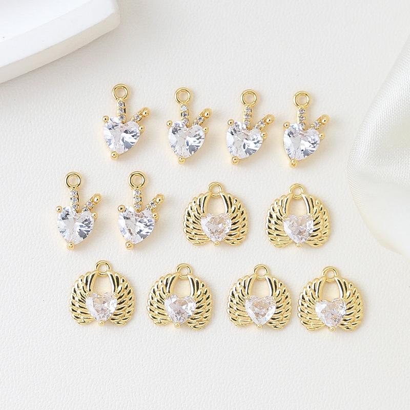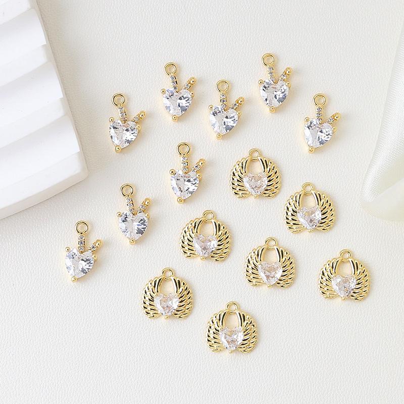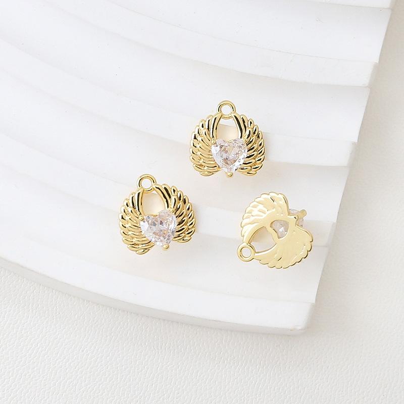 Colgante de alas de circonita con forma de bolsa de cobre, color dorado, para hacer tú mismo, joyería hecha a mano, pulsera, collar, pendientes, accesorios.