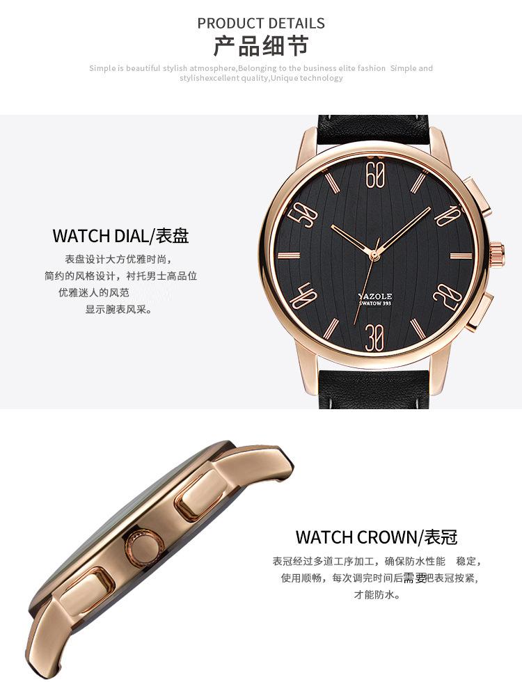 393 YAZOLE Números arábigos Reloj de cuarzo para hombre simple, moderno y casual