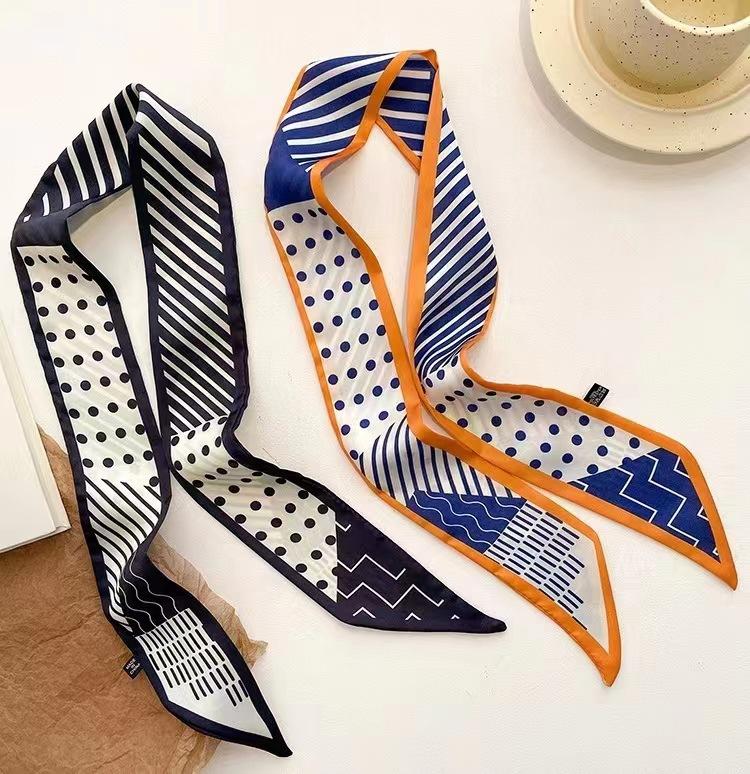 Bufanda de seda negra con diamantes para mujer, banda para el pelo larga, primavera y otoño, estilo coreano, lazo para el pelo, bolso, cinta, bufanda decorativa