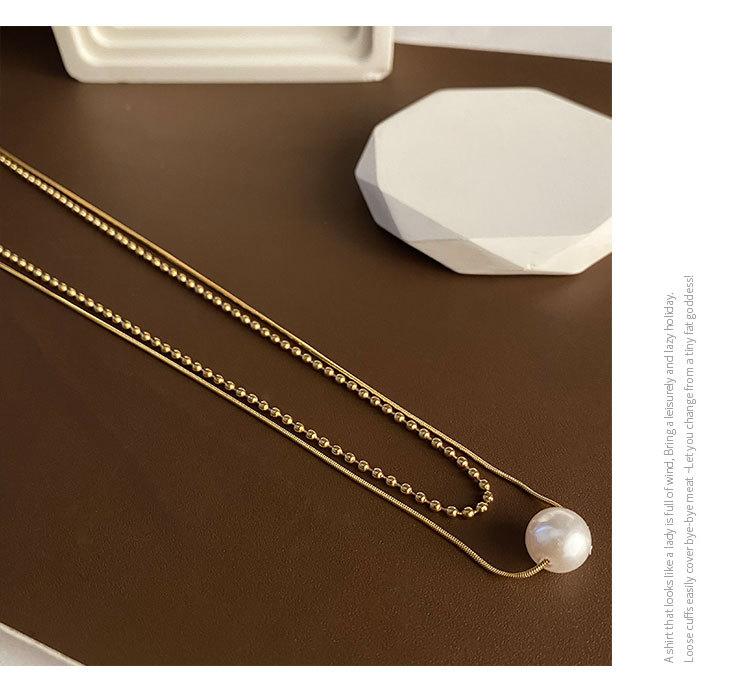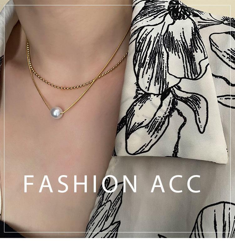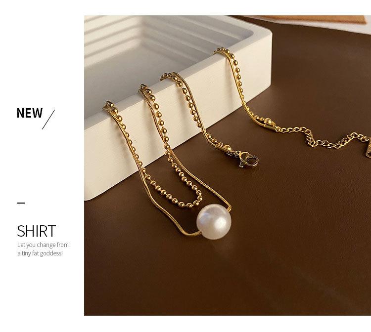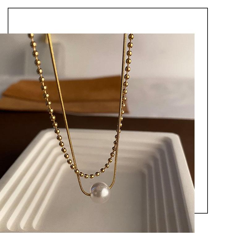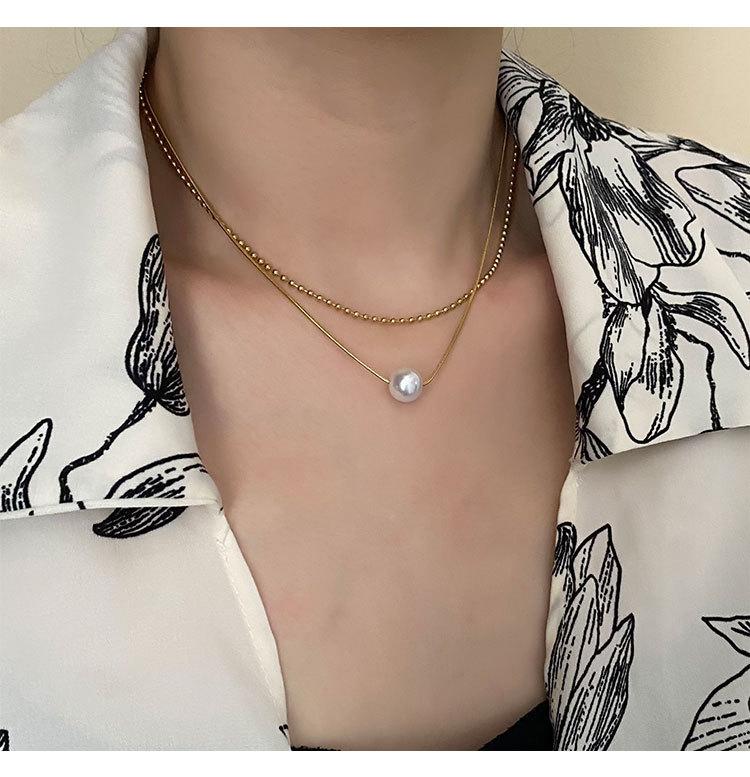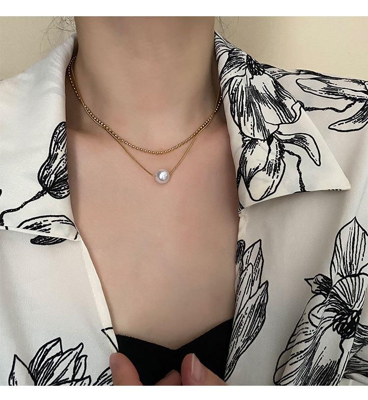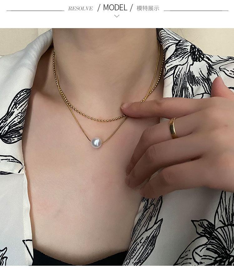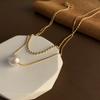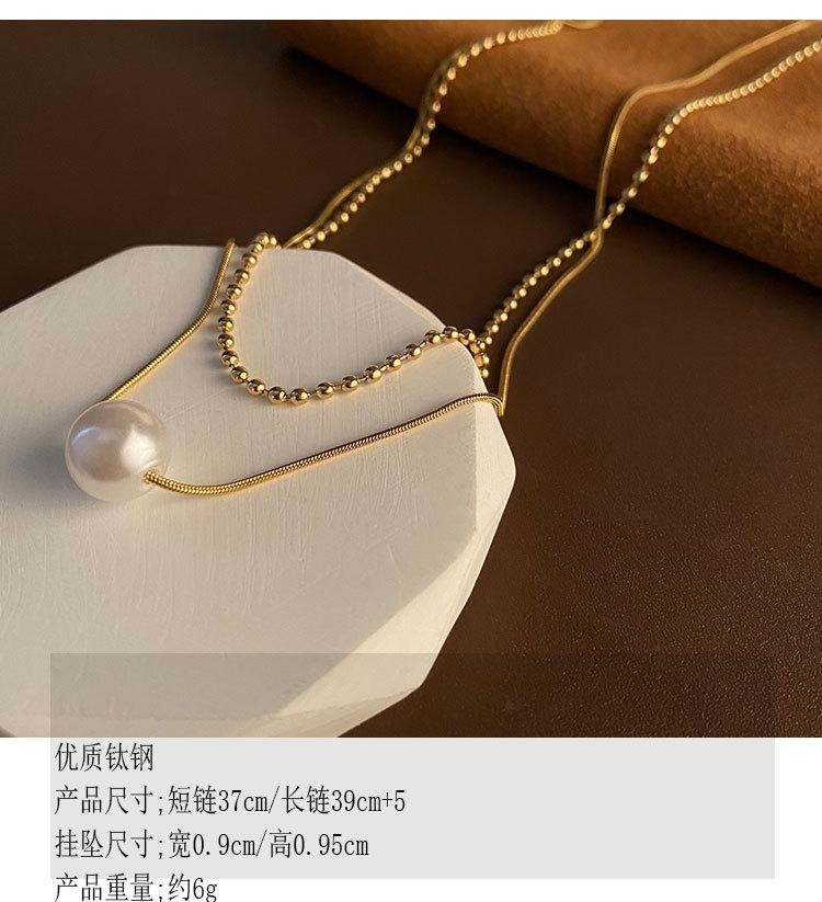 04-J1 titanium steel imitation pearl double necklace