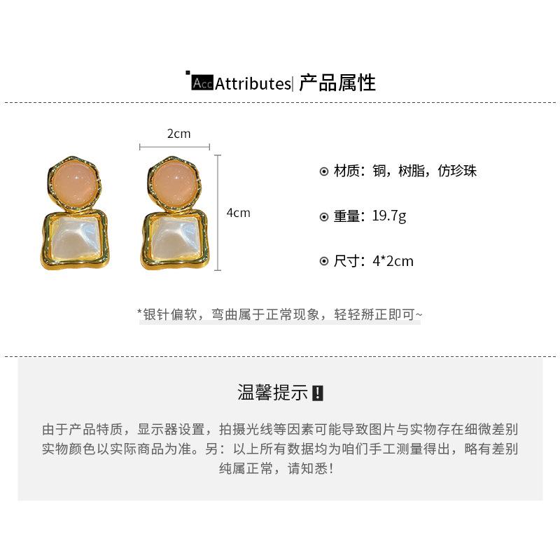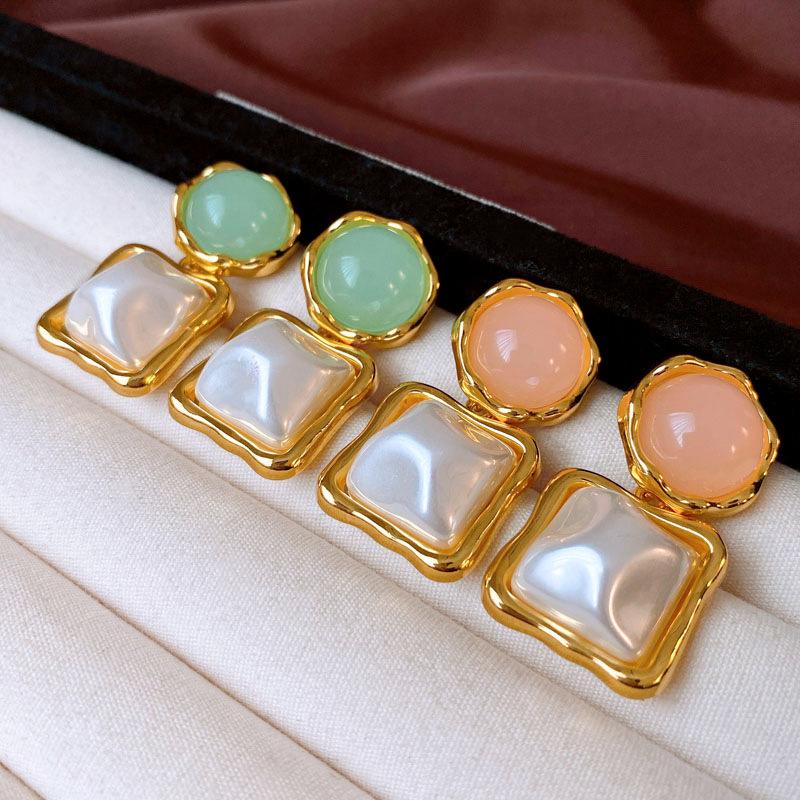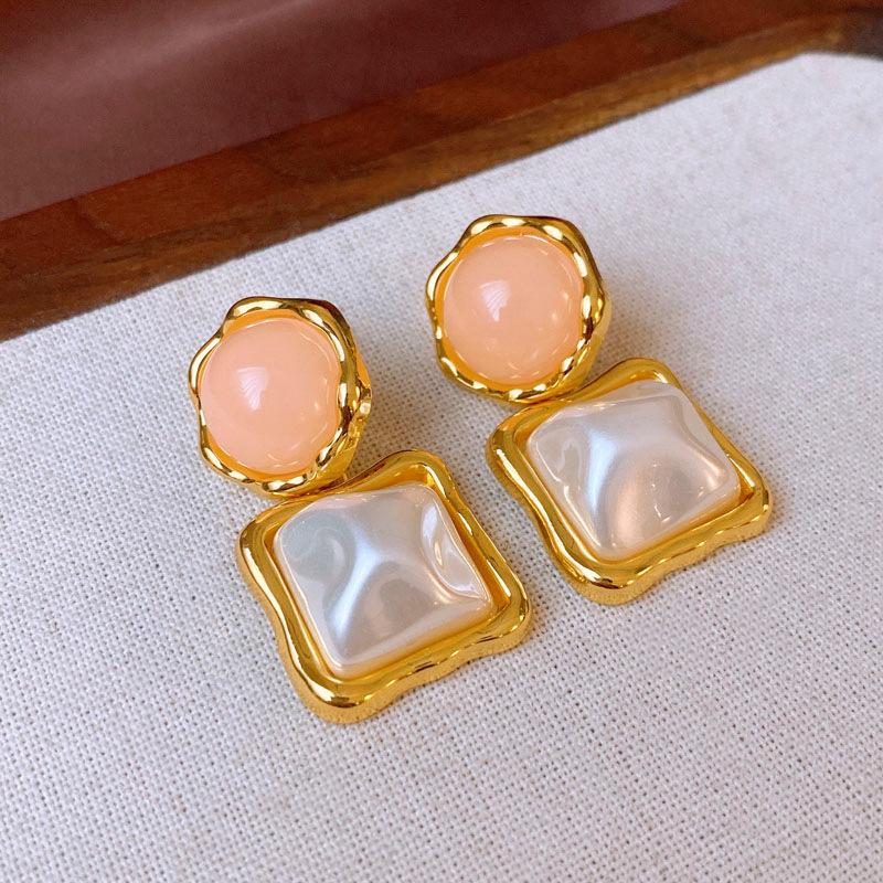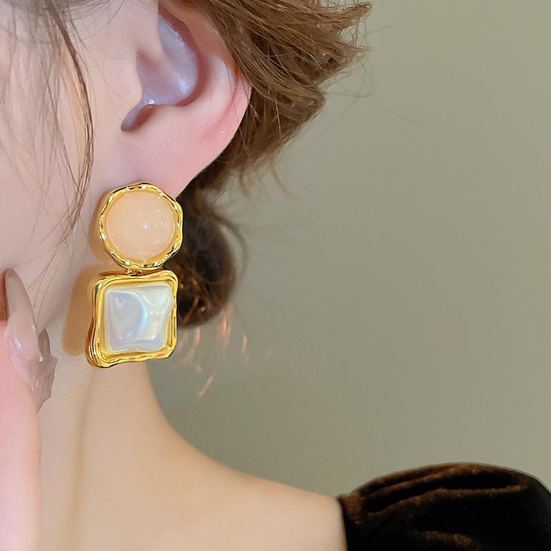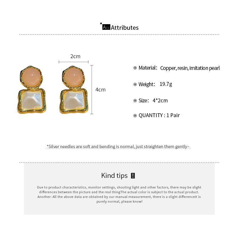 Aretes de Resina Color Caramelo Redondos Imitación Perla Cuadrados Pin Plateado Moda Simple Geométricos Elegantes Nicho para Mujer