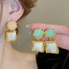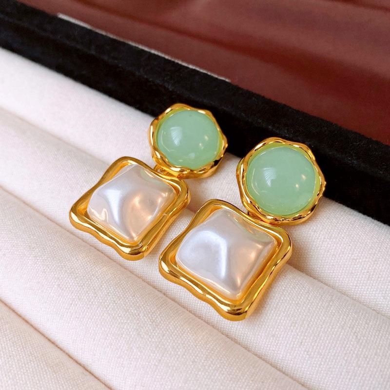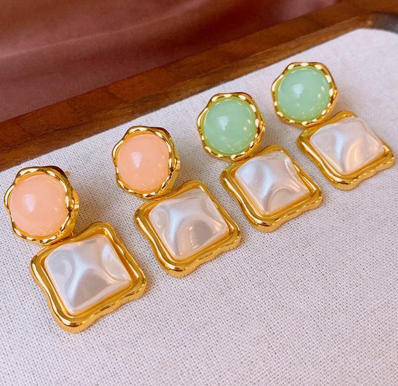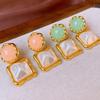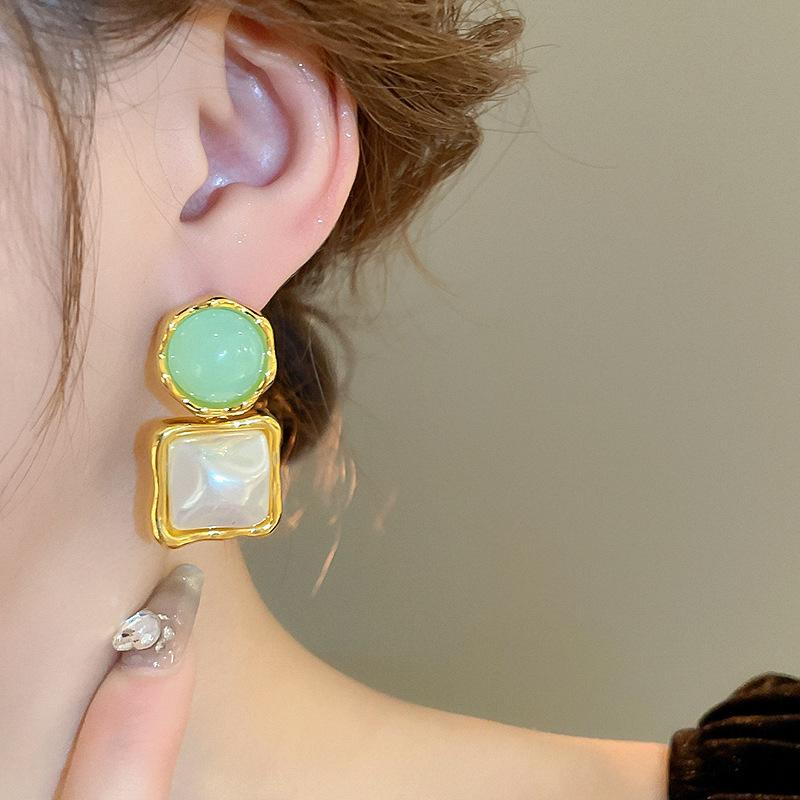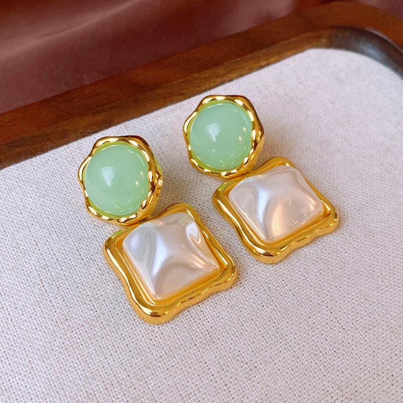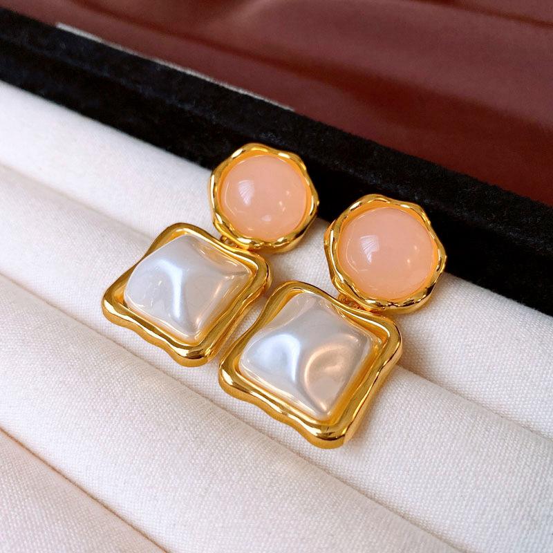 Aretes de Resina Color Caramelo Redondos Imitación Perla Cuadrados Pin Plateado Moda Simple Geométricos Elegantes Nicho para Mujer