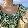 Sobre el material: cuentas de arroz de vidrio, perlas de vidrio, hilo de algodón. Perlas de vidrio: La textura es diferente a la de las perlas de vidrio con efecto espejo. La textura de las perlas de vidrio es súper bonita. ¡Más brillante! La superficie es más lisa, como un huevo pelado. ¡Nuuuuu! No se descascara y se puede usar por más tiempo que las perlas de efecto espejo. Las joyas requieren un mantenimiento más cuidadoso: evite el contacto con el sudor durante mucho tiempo y evite remojarlas en agua, productos químicos, etc. Sobre el tamaño: La circunferencia del collar de flores es de aproximadamente 36 cm + la cadena de extensión es de aproximadamente 5 cm. La circunferencia del collar de perlas es de aproximadamente 36 cm + la cadena de extensión es de aproximadamente 5 cm.