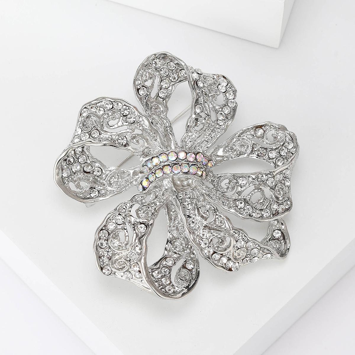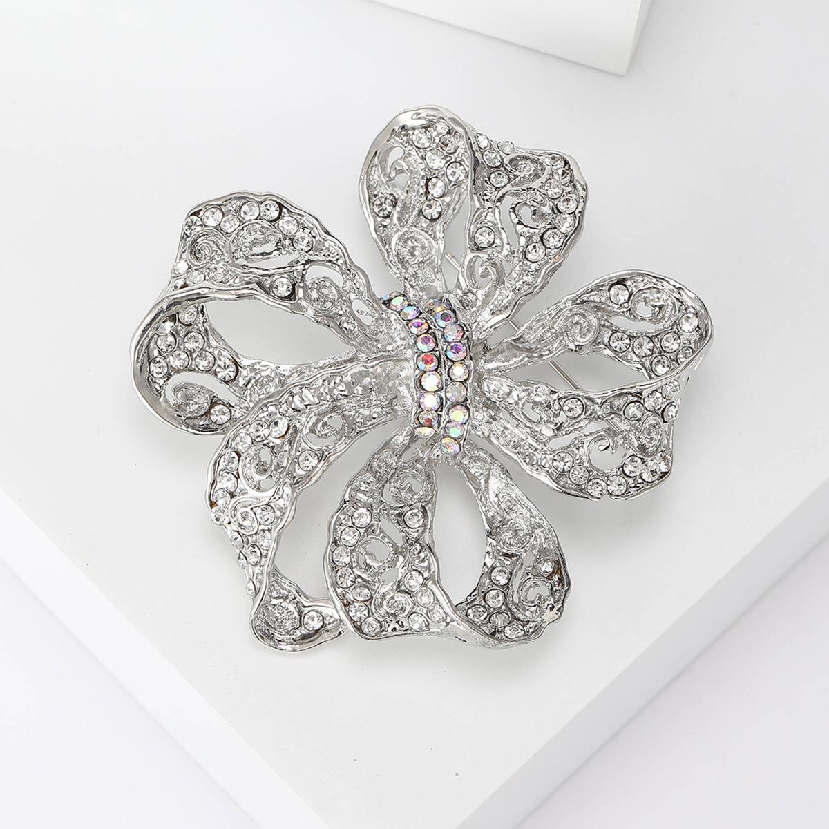 Broche de ramillete de cristal de alta gama de Corea del Sur, estilo retro, elegante, gris, combina con todo, con perlas, venta directa de fábrica
