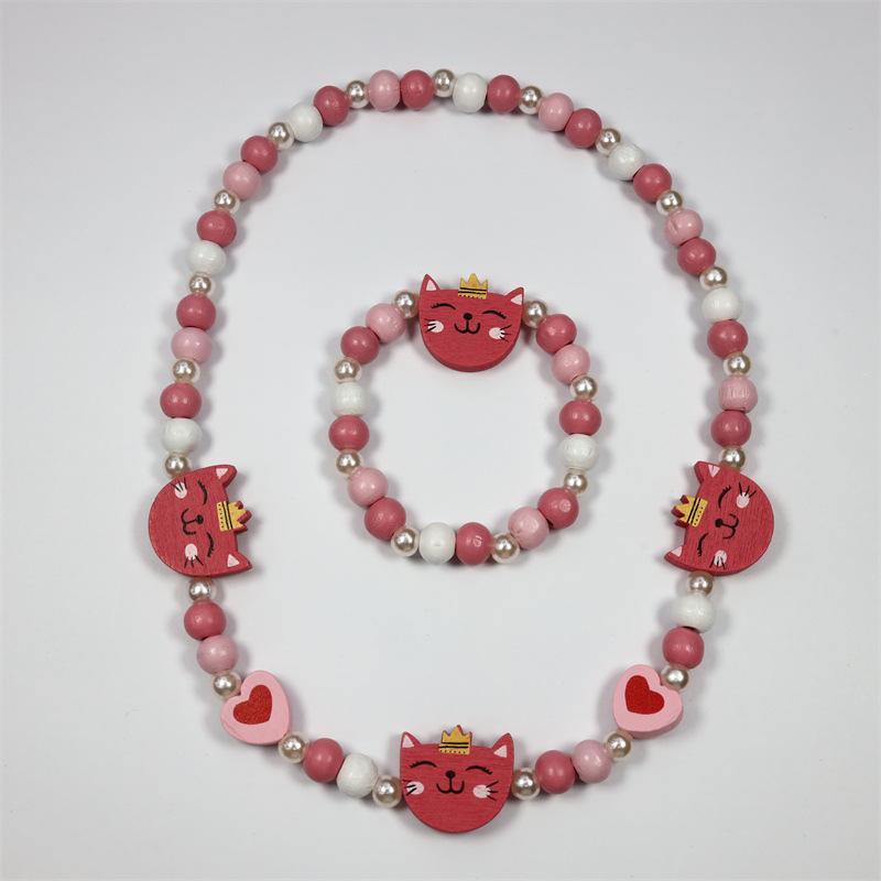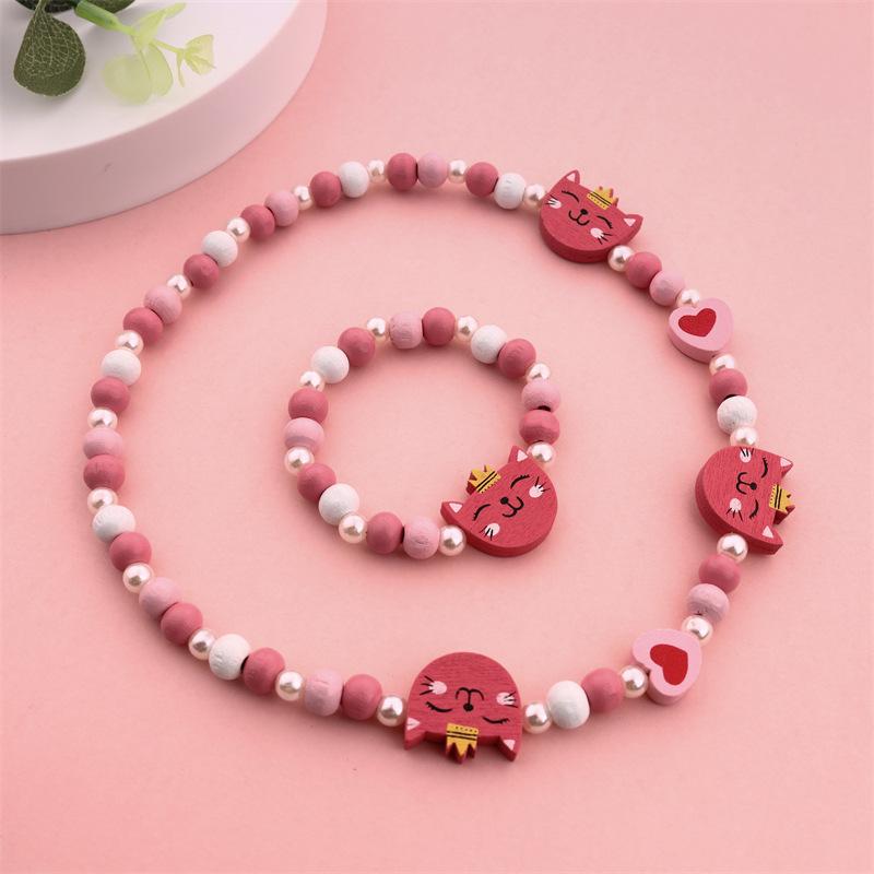 Collar de cuentas de madera para niños con gatito estilo coreano, traje de pulsera de cuentas con cuentas de carita sonriente, joyería para niña, regalo para niños