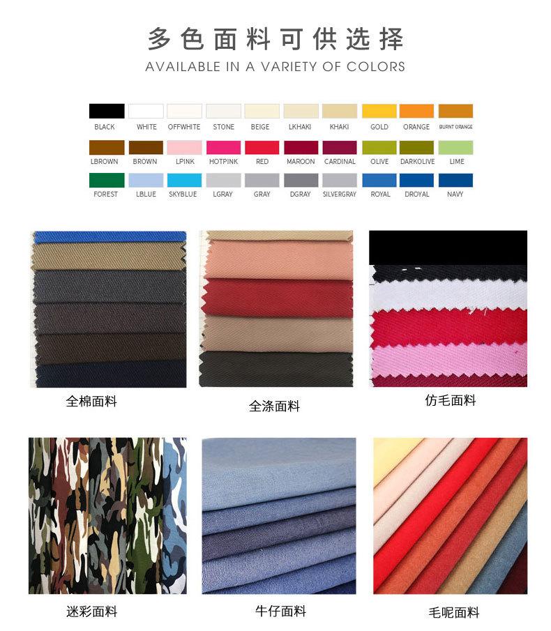 Black, Dark gray, Army Green, Royal Blue, Light gray, Khaki