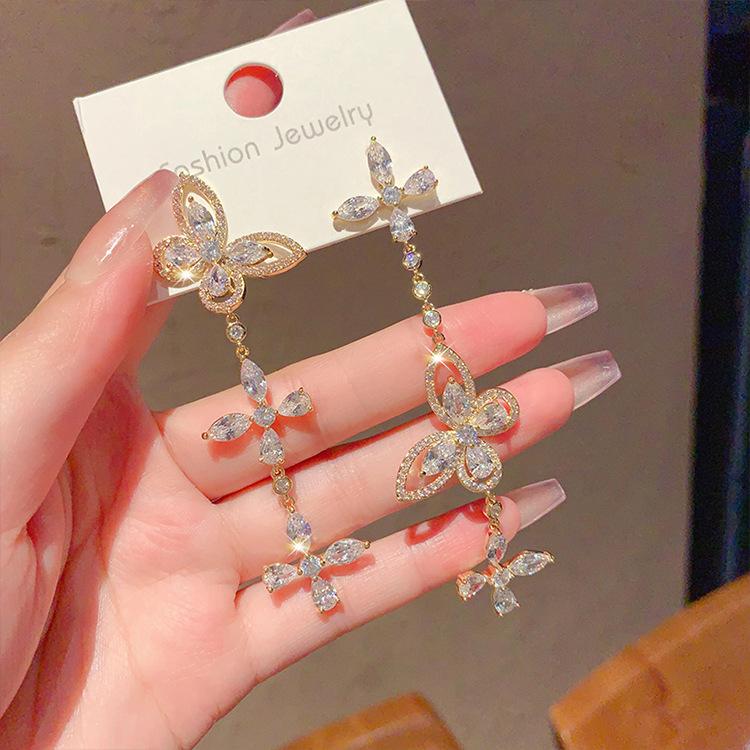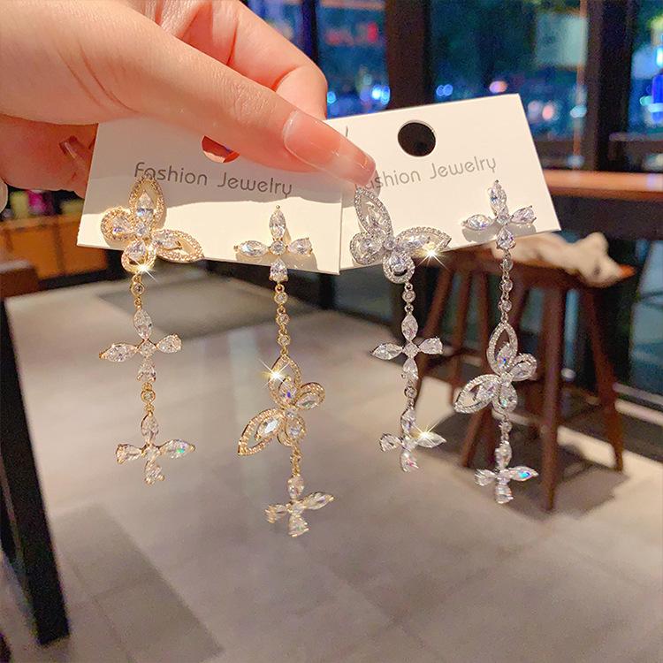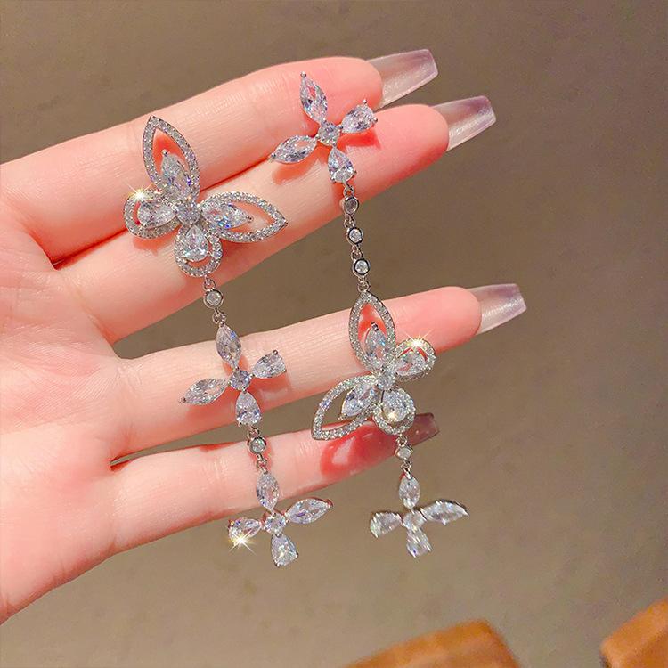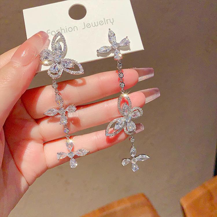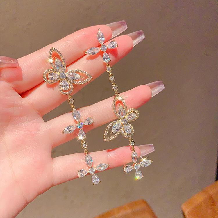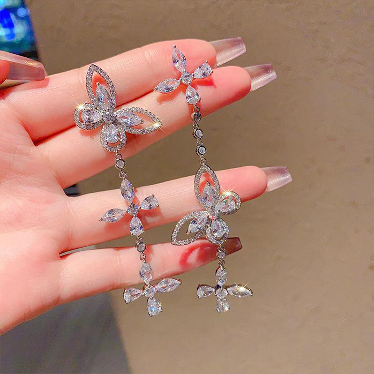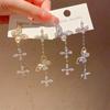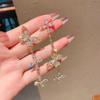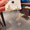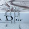 Exquisitos aretes de tuerca simples estilo japonés y coreano con diamantes de imitación incrustados, borla asimétrica de lazo, aretes de moda que combinan con todo