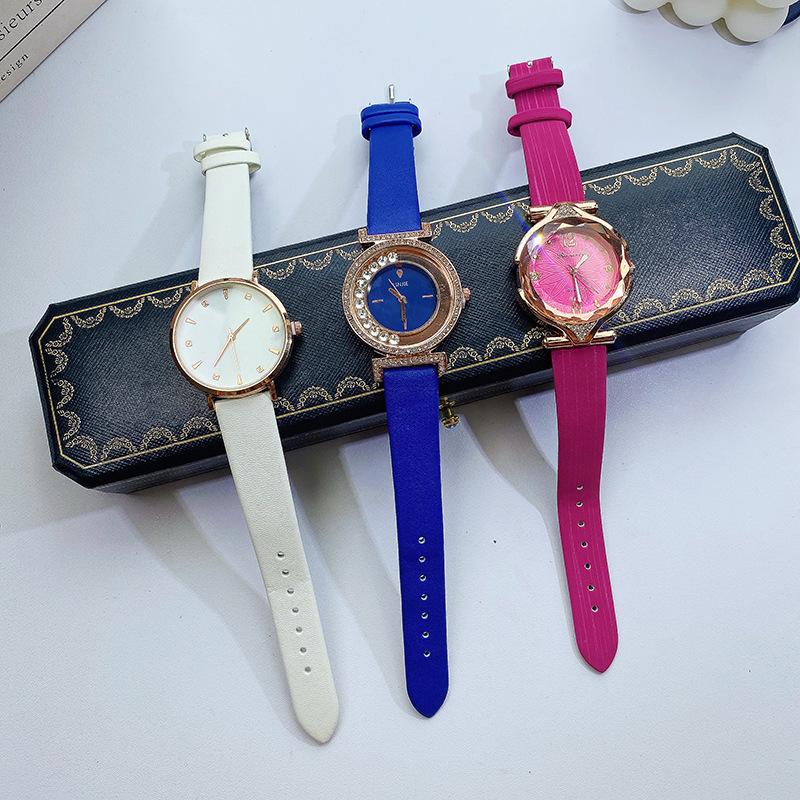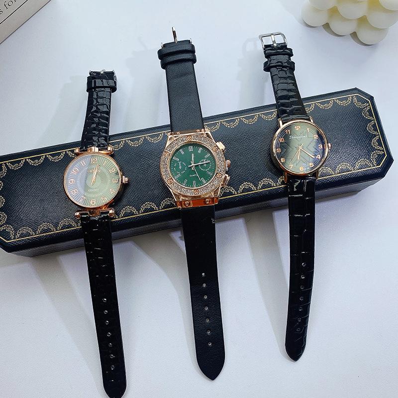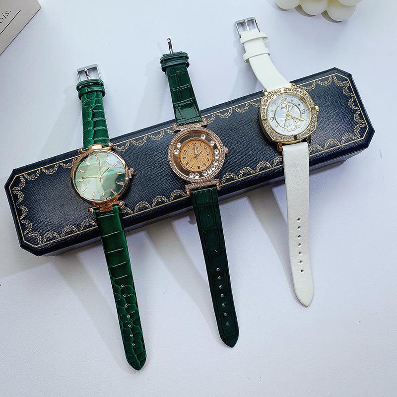【Material】: aleación, diamante, correa de cuero artificial, etc.