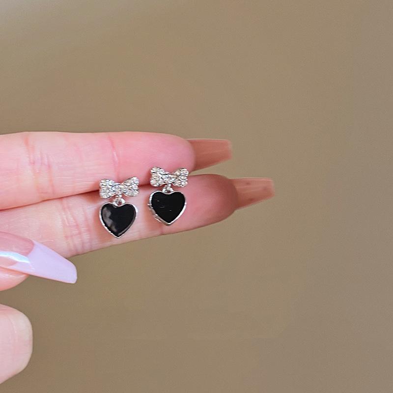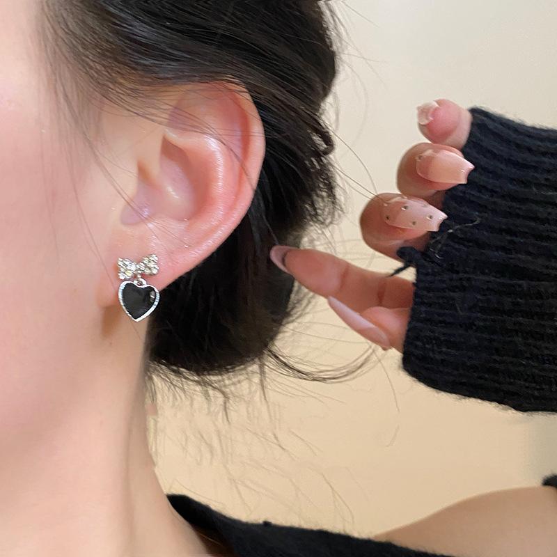 Pendientes de plata S925 con forma de aguja negra y diseño de nicho para mujer, con lazo dulce y fresco, pendientes de viento frío, venta al por mayor