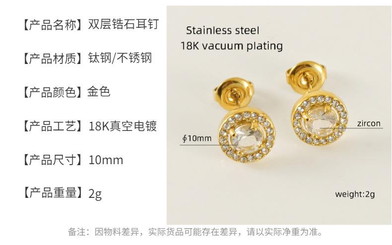 Pendientes de circonita de acero de titanio de estilo europeo y americano para mujer, pendientes de diamantes de doble capa de acero inoxidable de 18 quilates, diseño de nicho, pendientes de alta calidad
