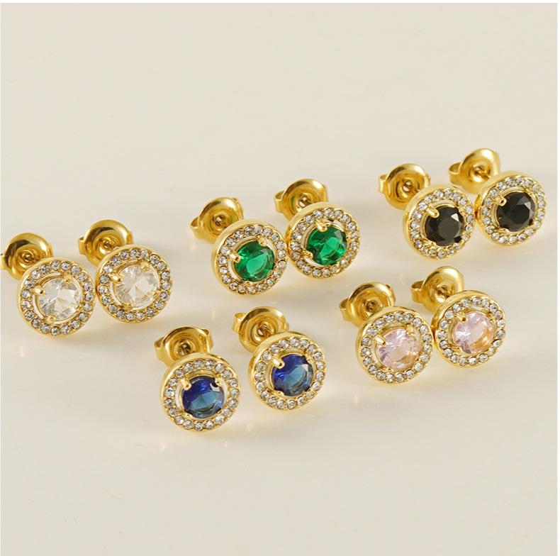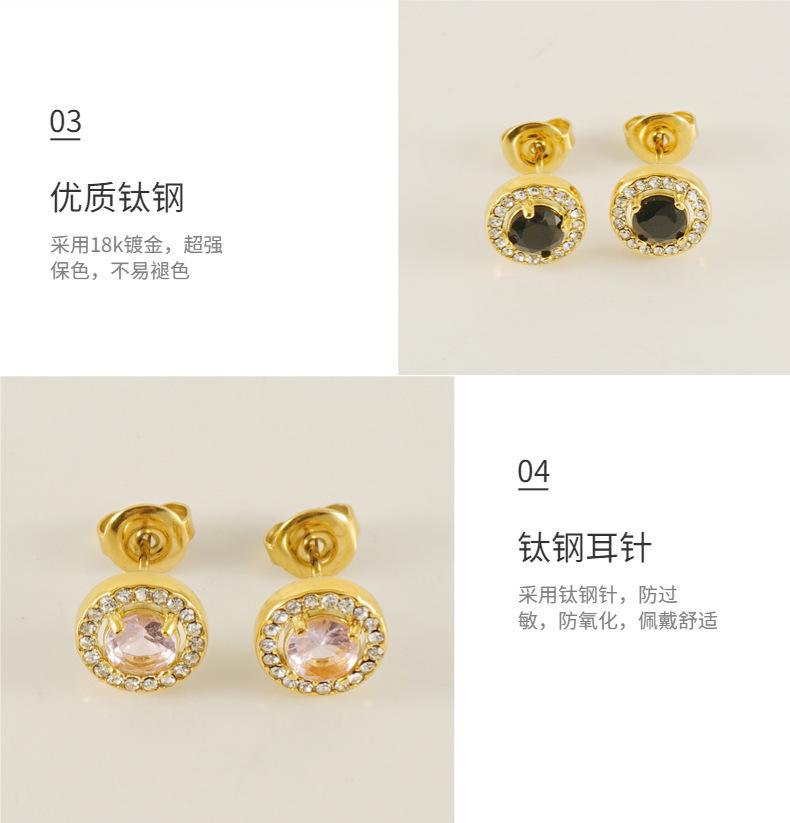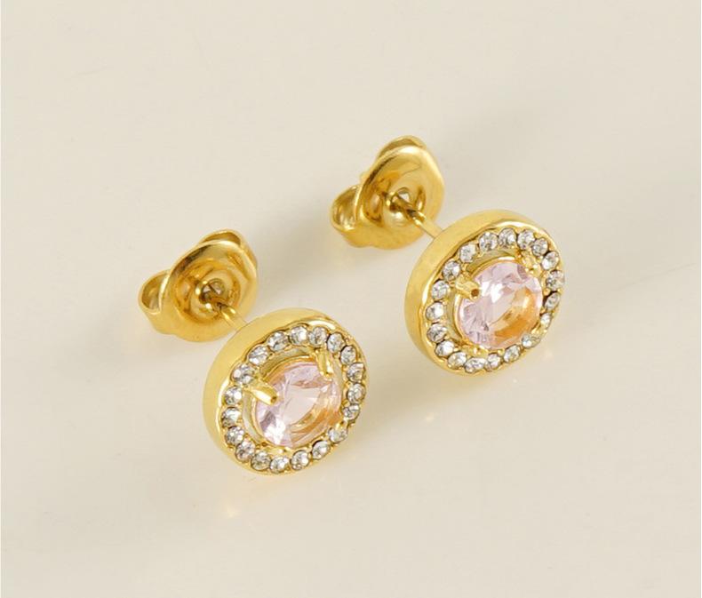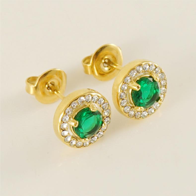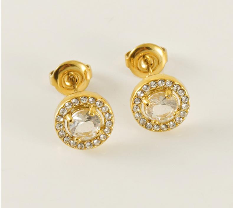Pendientes de acero inoxidable con incrustaciones de circonitas, de moda europea y americana, con incrustaciones de diamantes y acero de titanio en oro de 18 quilates, al por mayor