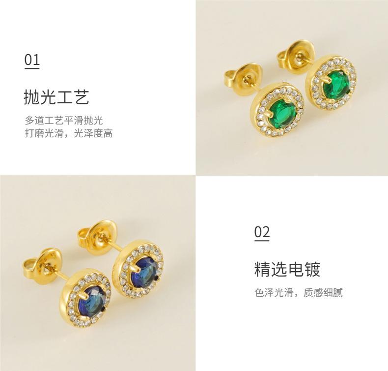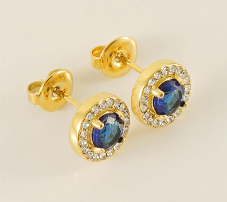 Pendientes de diamantes de acero inoxidable europeos y americanos transfronterizos para mujer Pendientes geométricos de turquesa azul de acero titanio y oro de 18 quilates de moda europea y americana para mujer