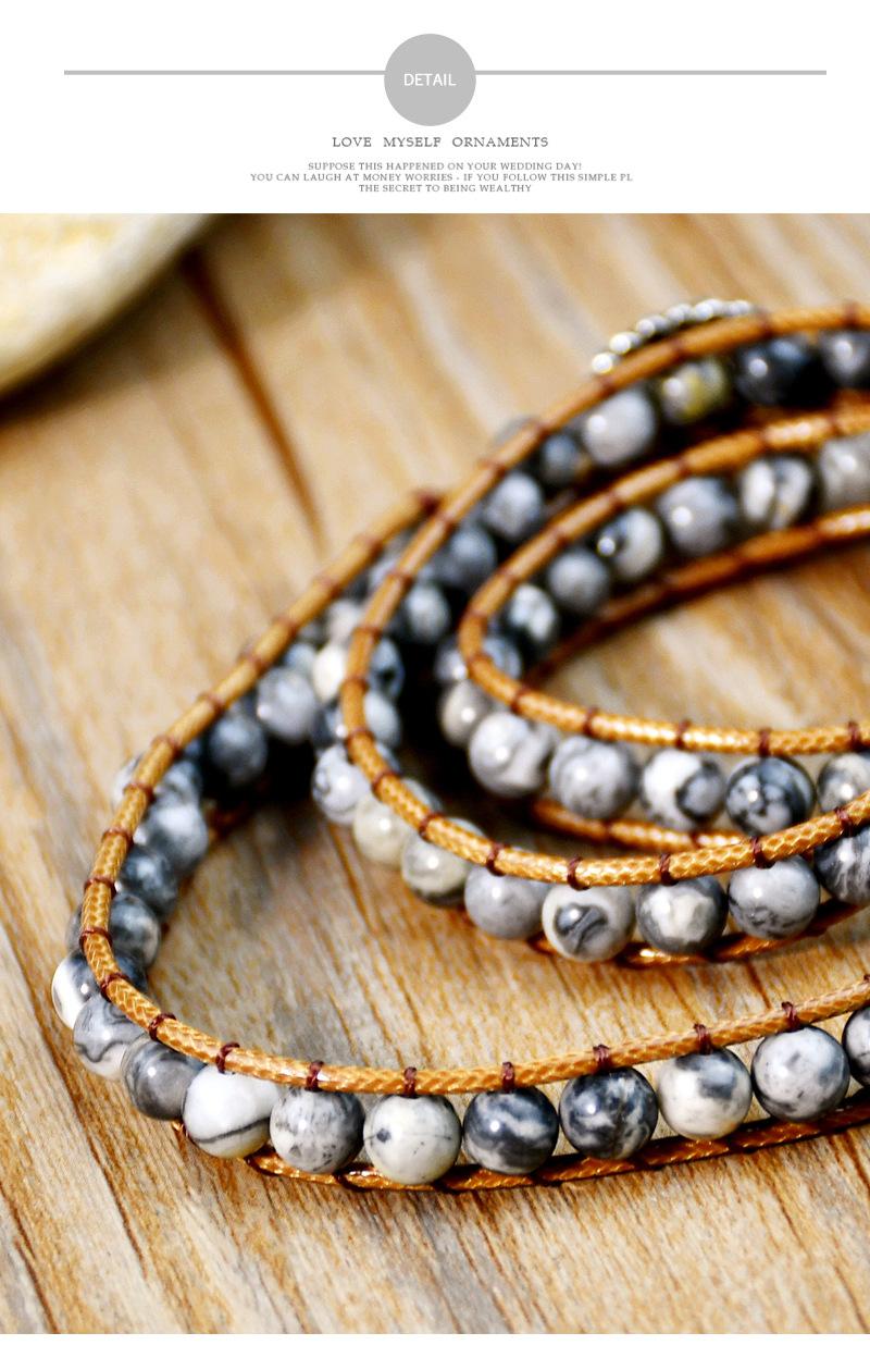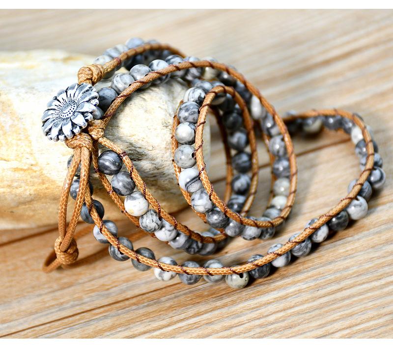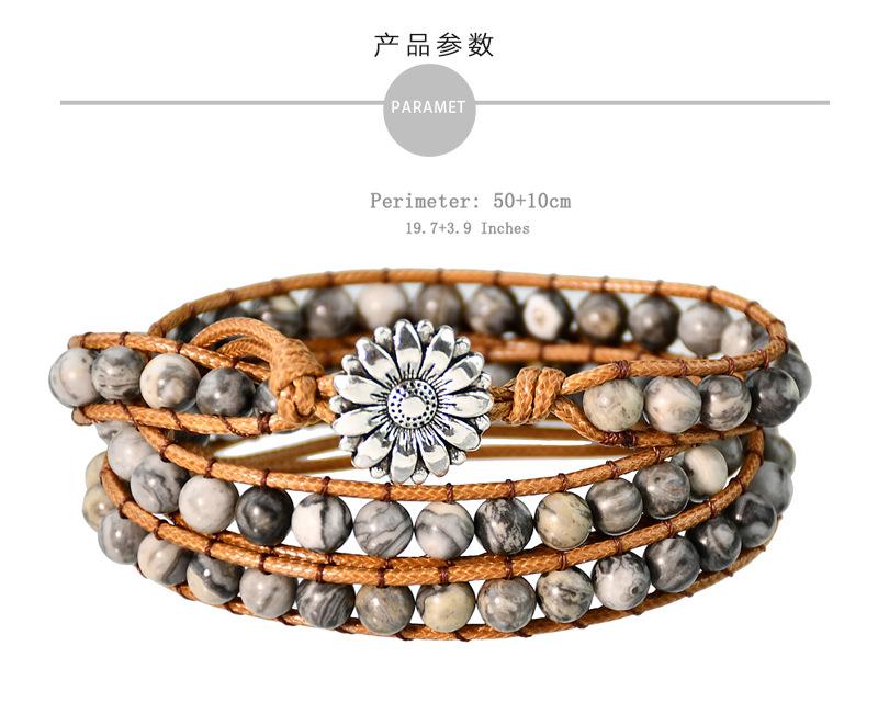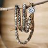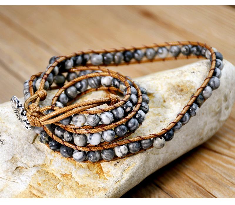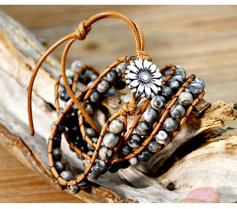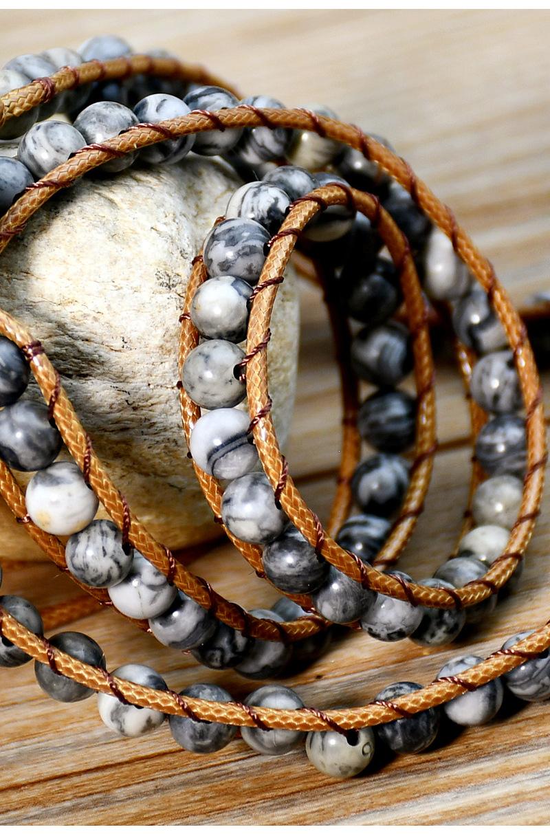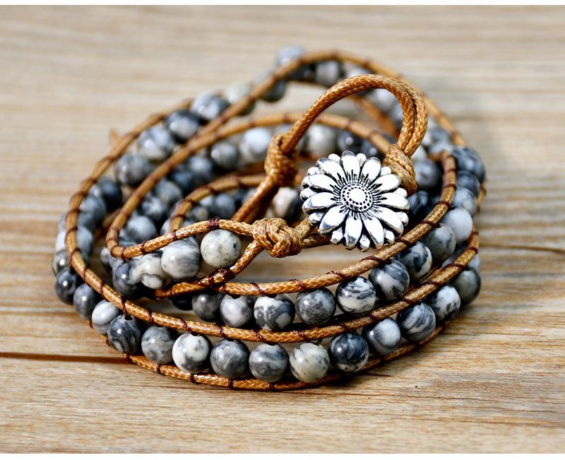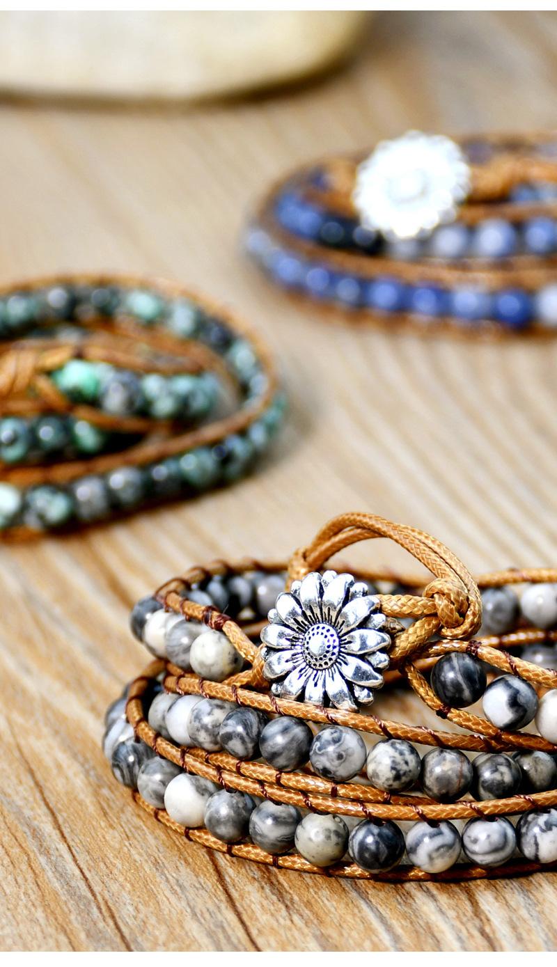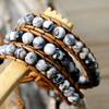 pulsera tejida hecha a mano vintage estilo boho con cuentas envueltas en piedra natural