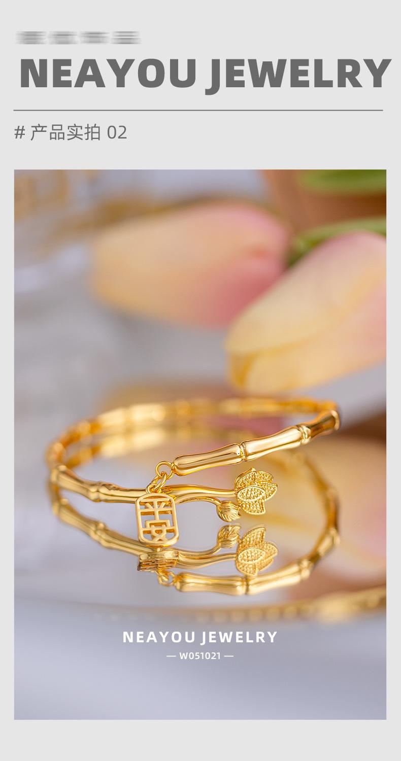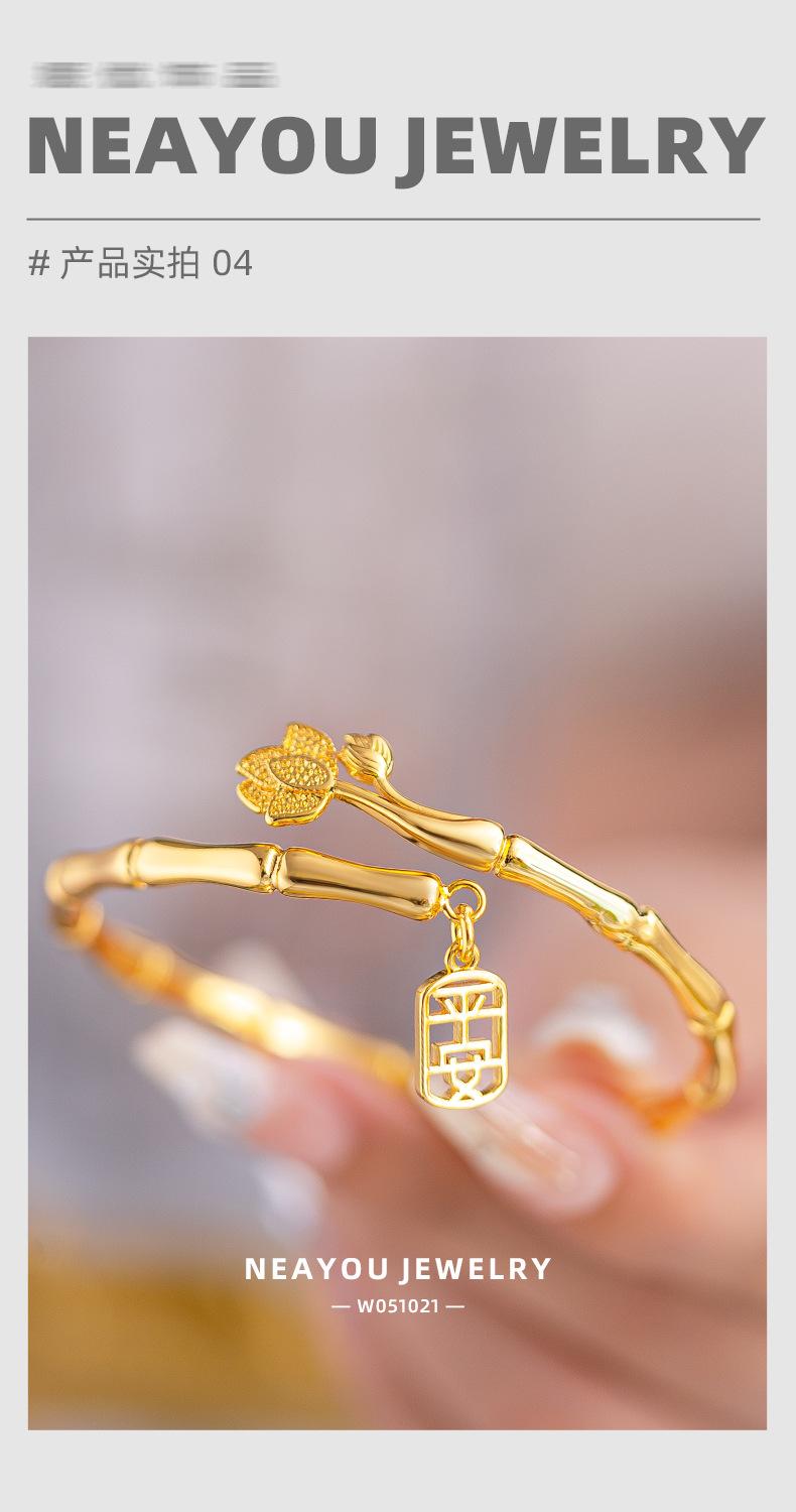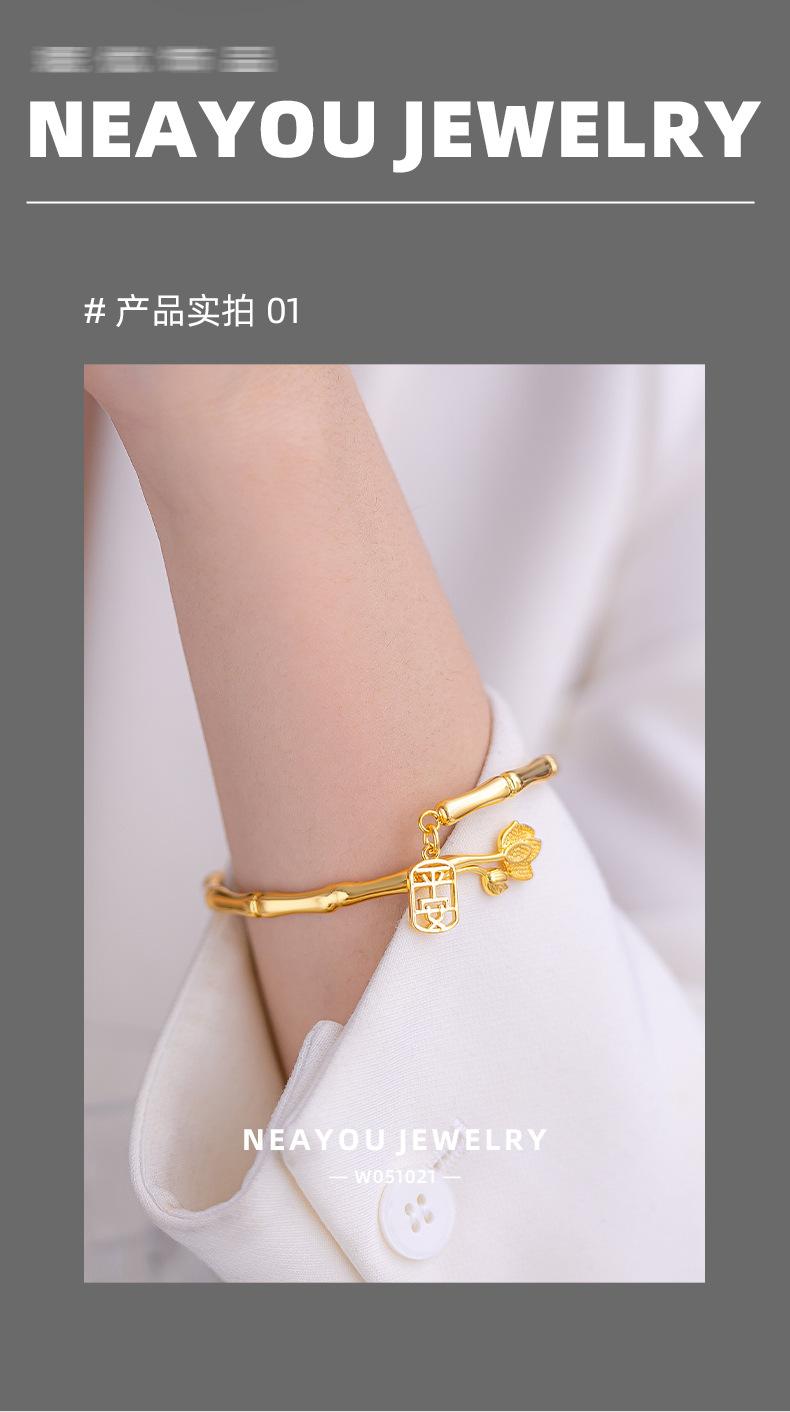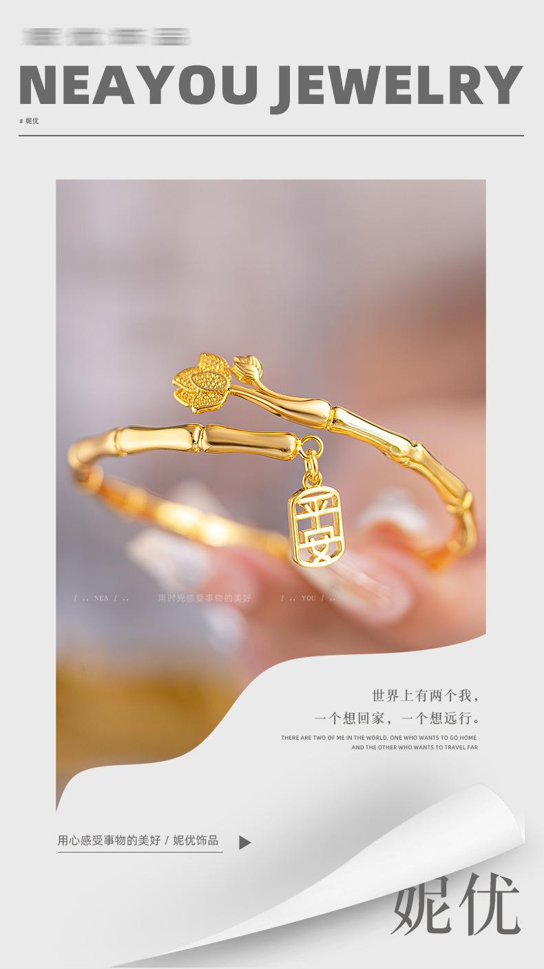 Brazalete de seguridad de nudo de bambú de estilo nacional de alta gama de nicho chapado en oro K oro loto nudo de bambú anillo liso pulsera al por mayor