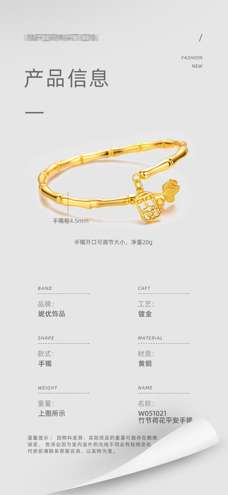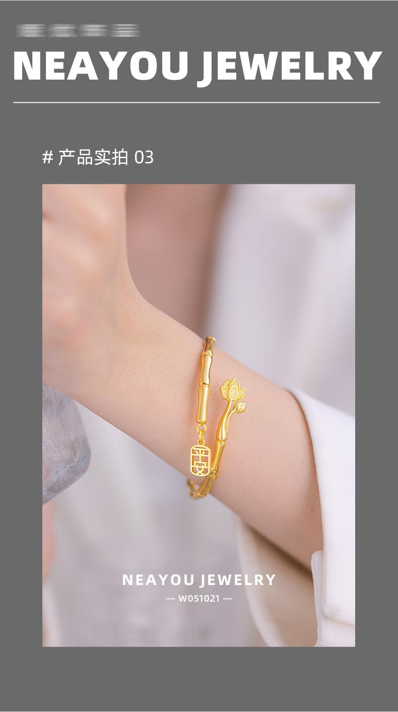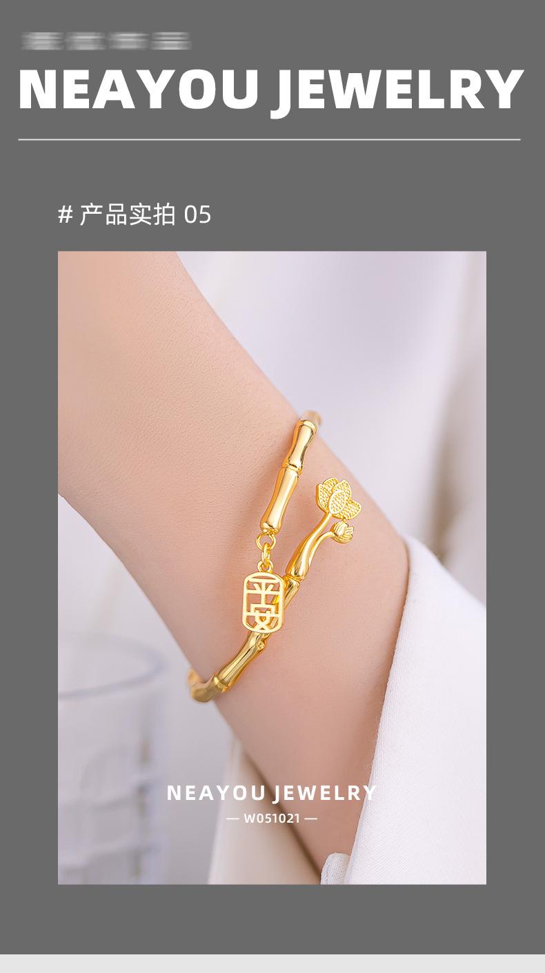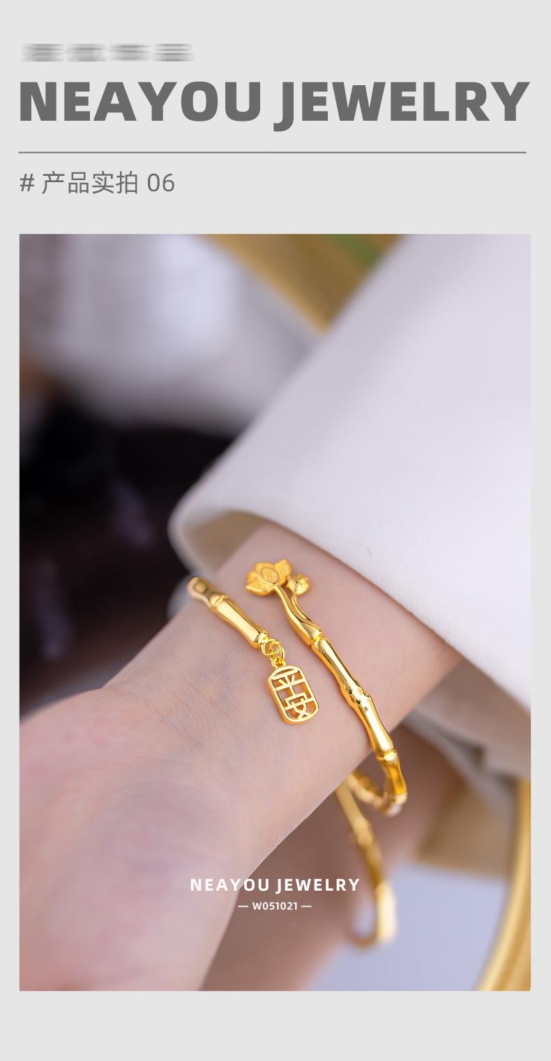 Brazalete de seguridad de nudo de bambú de estilo nacional de alta gama de nicho chapado en oro K oro loto nudo de bambú anillo liso pulsera al por mayor