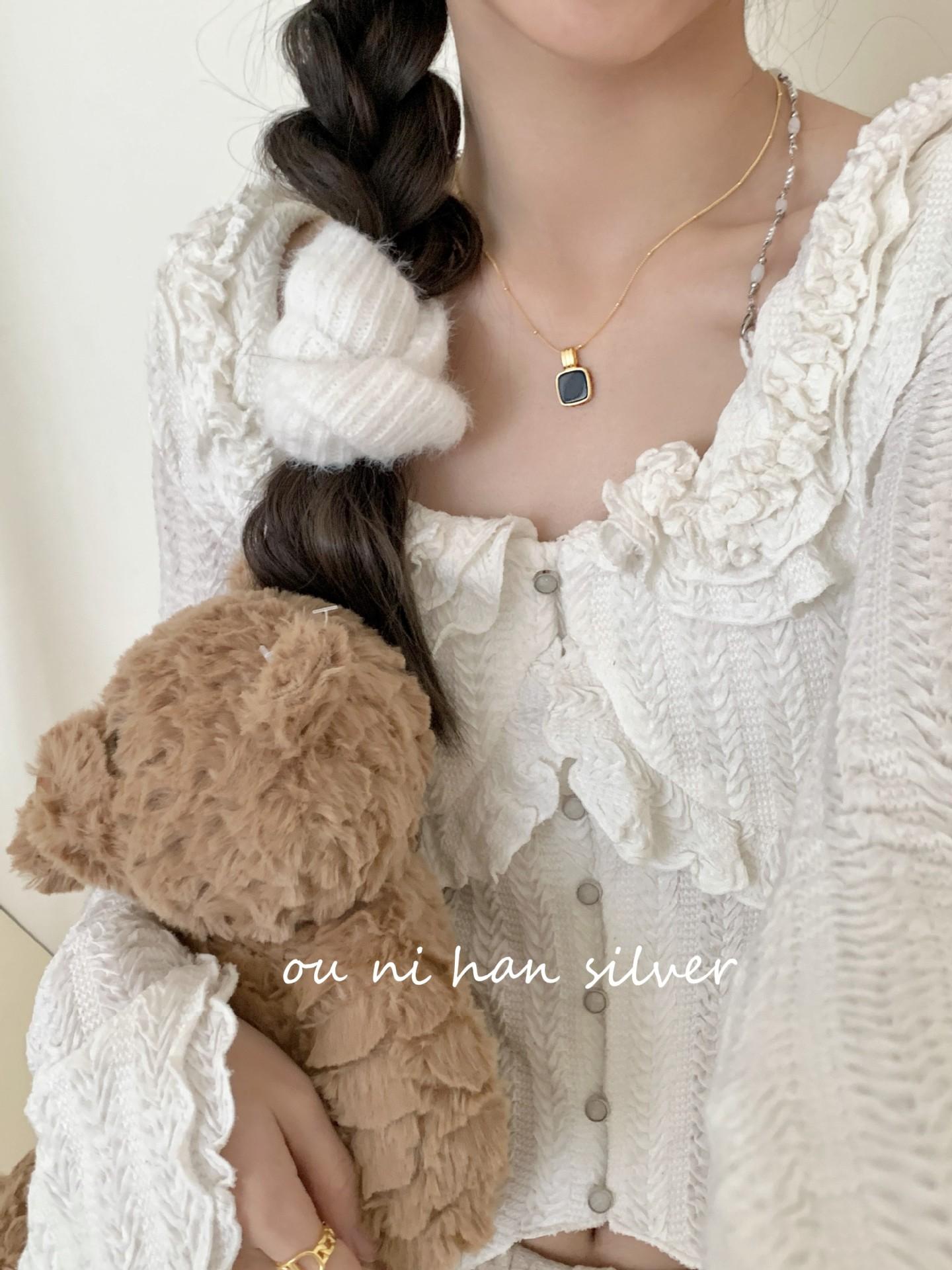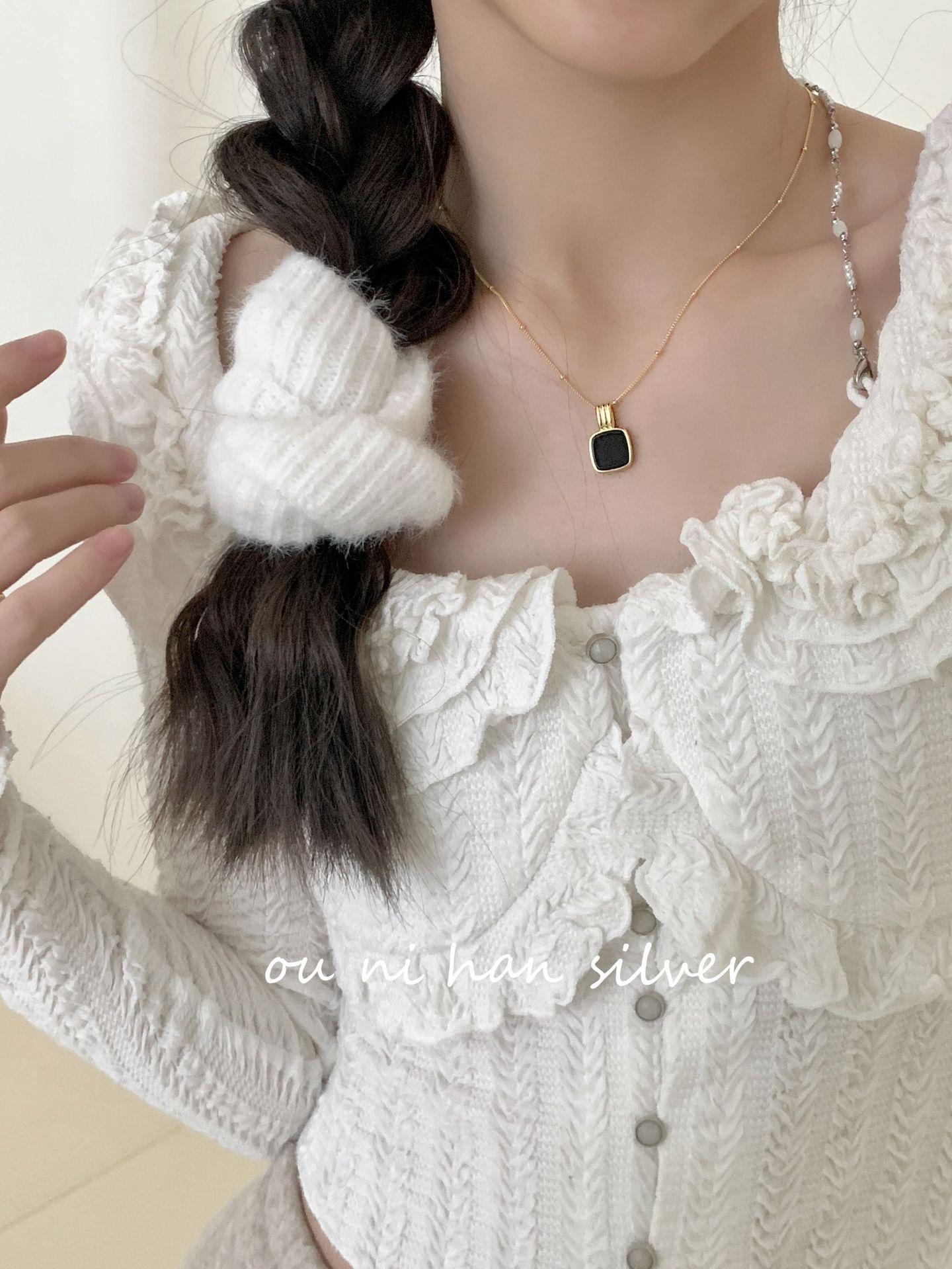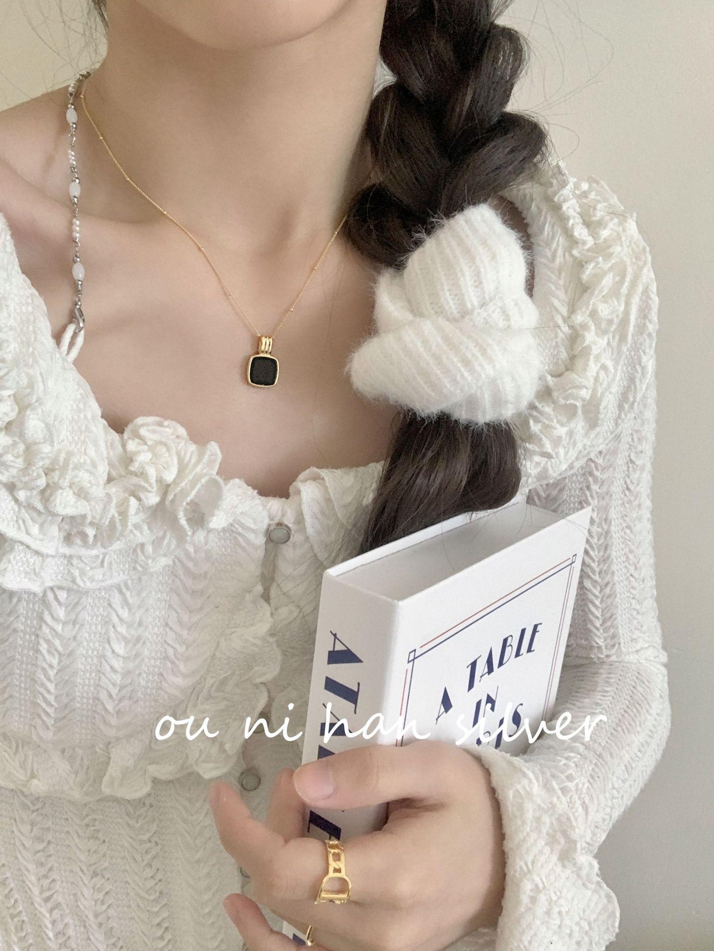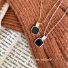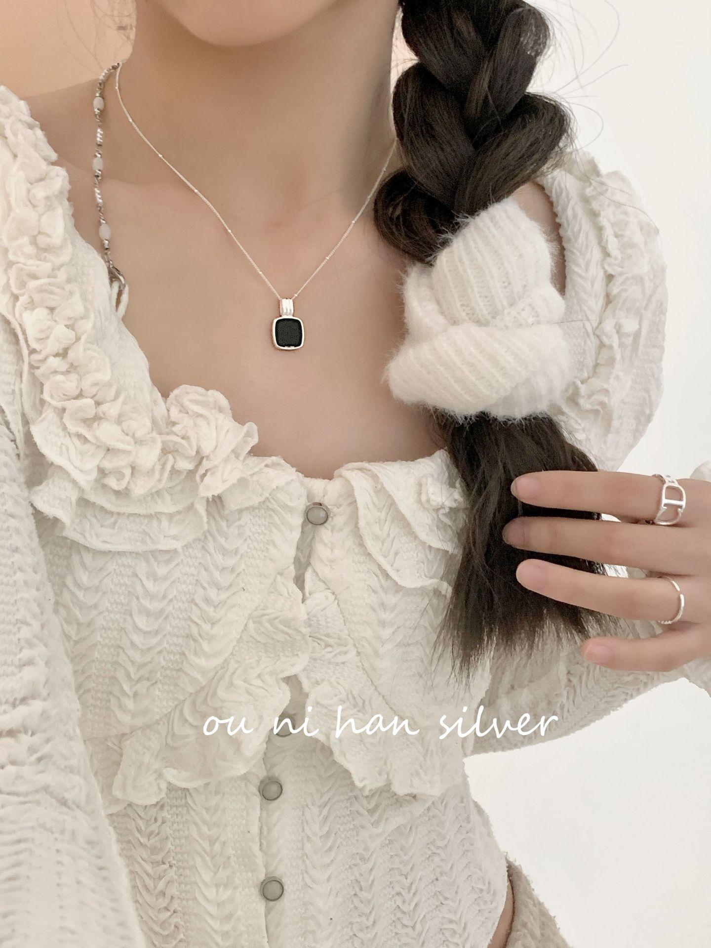 Collar con colgante cuadrado geométrico de ágata negra con diseño de nicho simple de plata esterlina S925 de Oni, cadena de clavícula estilo ins para mujer
