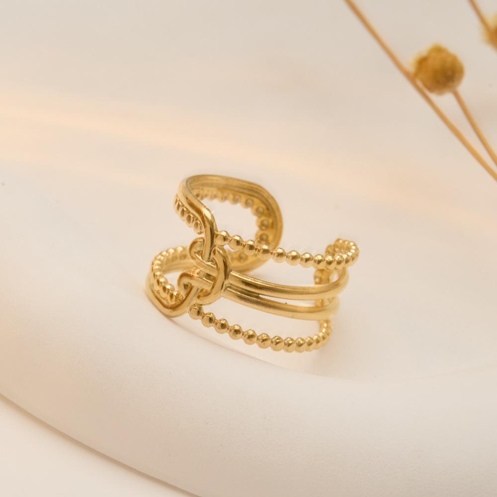 Anillo Europeo y Americano Transfronterizo de Moda Nicho Versátil de Lujo Ligero Acero Inoxidable Oro Abierto Hueco Envolvente Anillo Joyería
