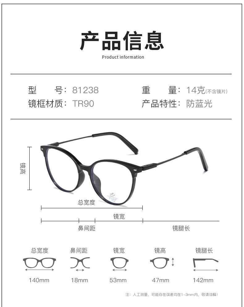 Bright black frame C1, Sand black frame C2, Transparent light tea frame C3, Transparent light gray frame c4, T...