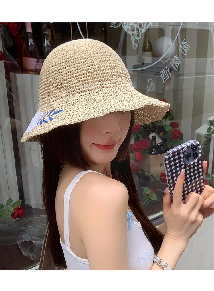 Sombrero de paja para mujer, verano 2023, nuevo estilo japonés, estilo fresco, plegable, tejido, con flores, sombrero de pescador.