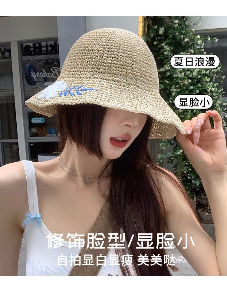 Compra Sombrero de paja para mujer, verano 2023, nuevo estilo japonés, estilo fresco, plegable, tejido, con flores, sombrero de pescador. al por mayor en Joom.pro