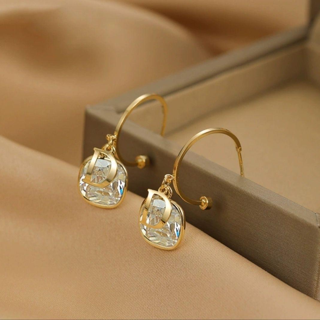 Pendientes de lujo con letras francesas para mujer, modernos y de alta gama, con un diseño geométrico personalizado.
