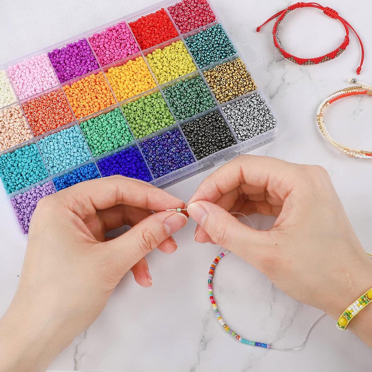 Conjunto de joyería DIY de Amazon: cuentas de vidrio de 24 colores, cuentas de arroz de 2 mm, accesorios de pulsera hechos a mano de venta transfronteriza.
