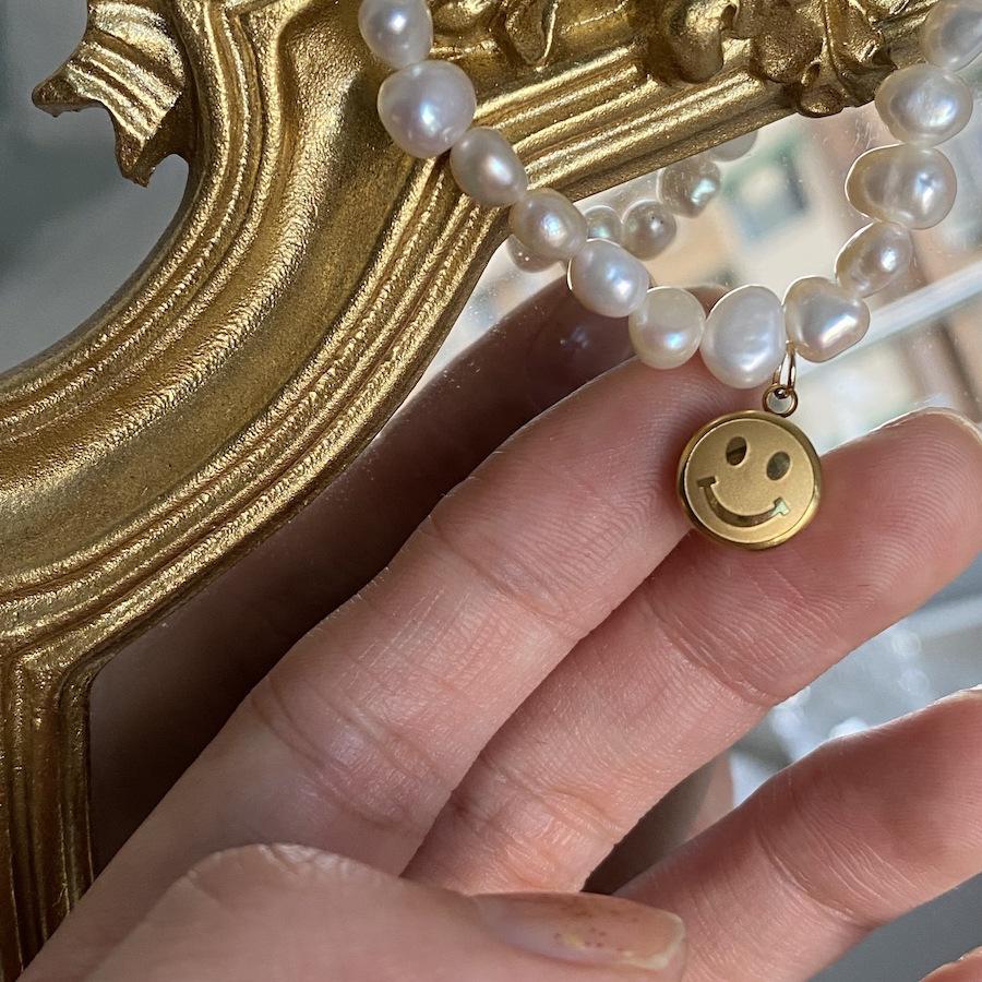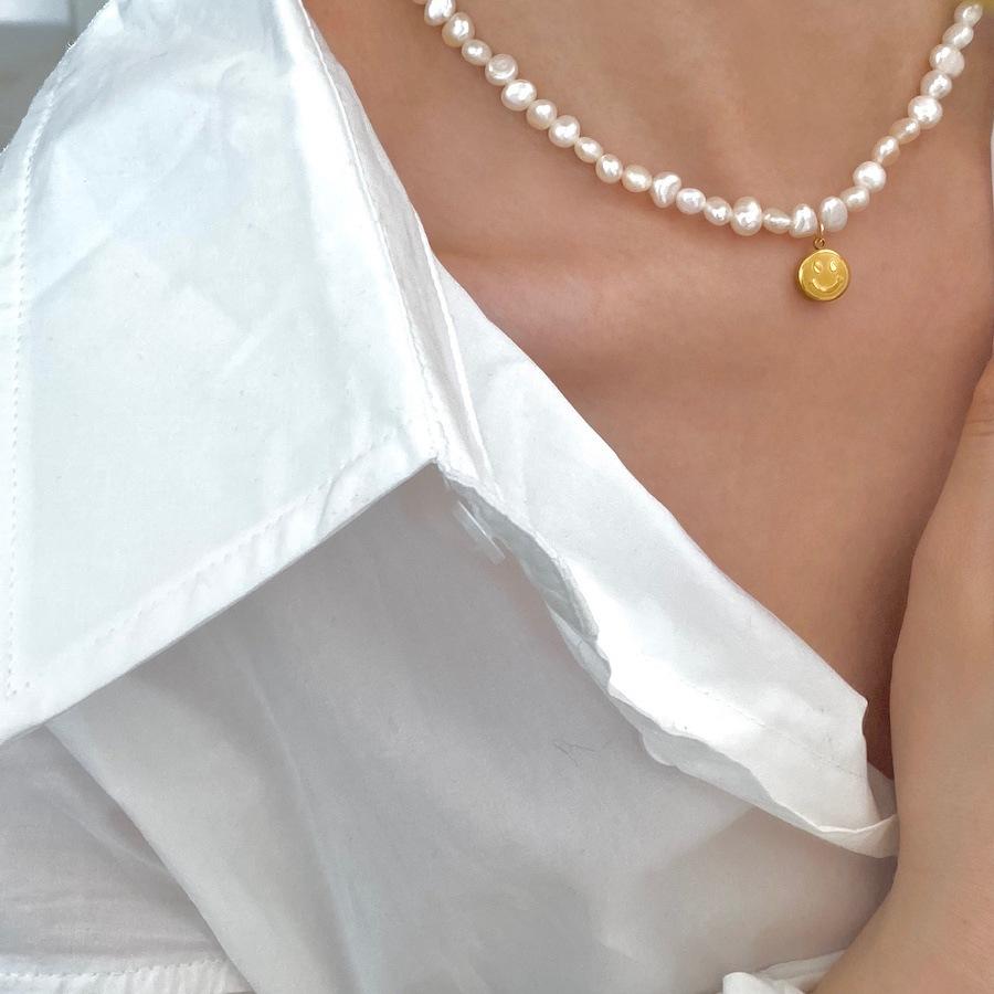 Baroque Freshwater Pearl Titanium Steel Smiley Necklace