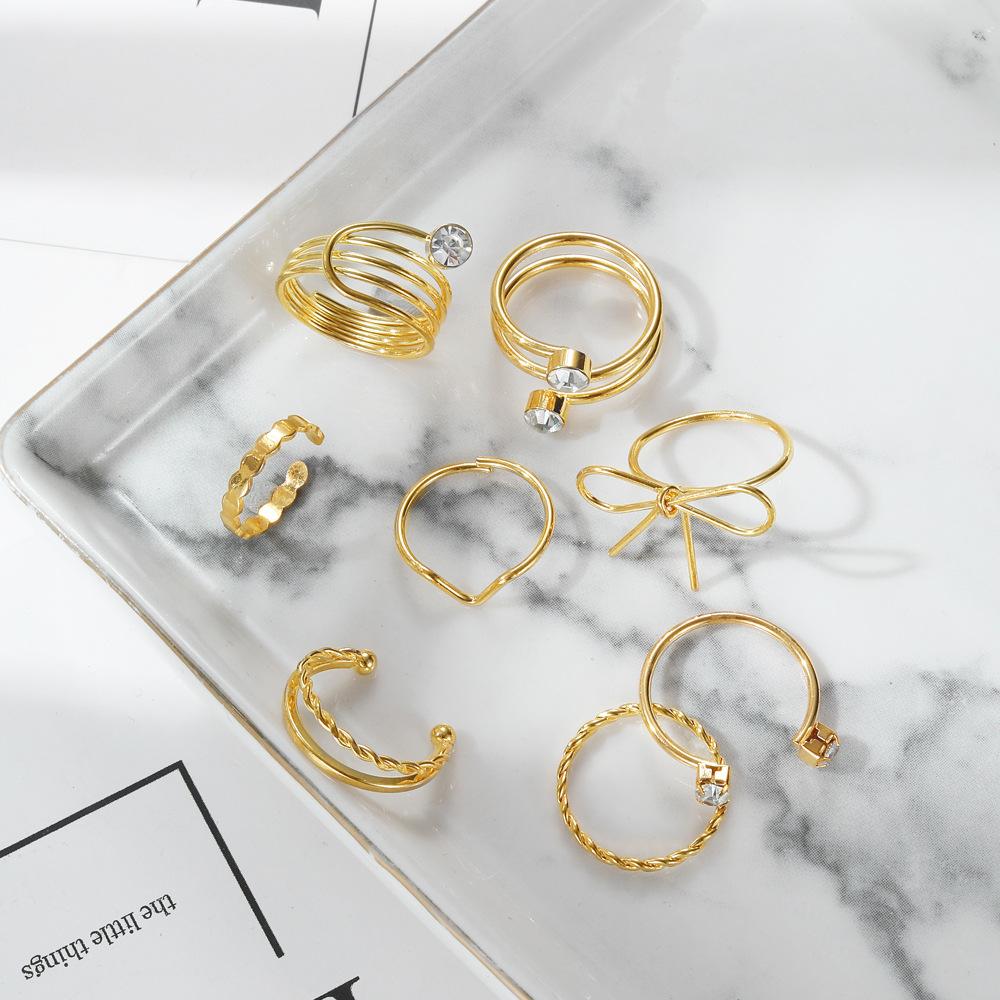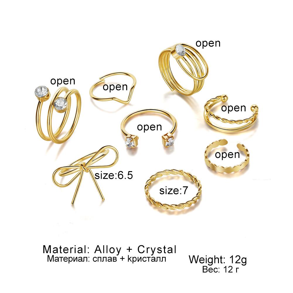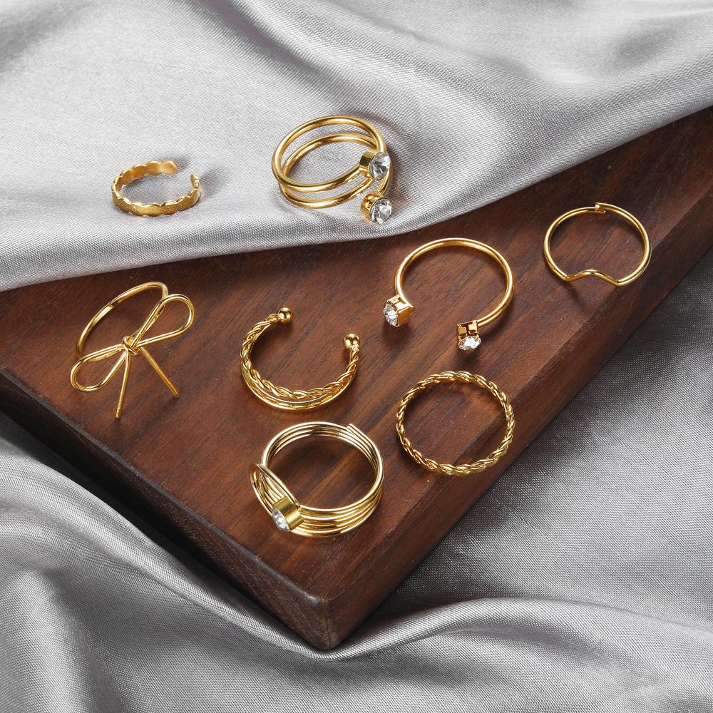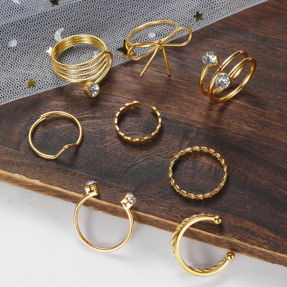 Set de anillos de estilo cool INS personalizado de venta caliente transfronteriza para mujer, juego de 8 piezas de anillo de articulación de mariposa con torsión retro europeo y americano