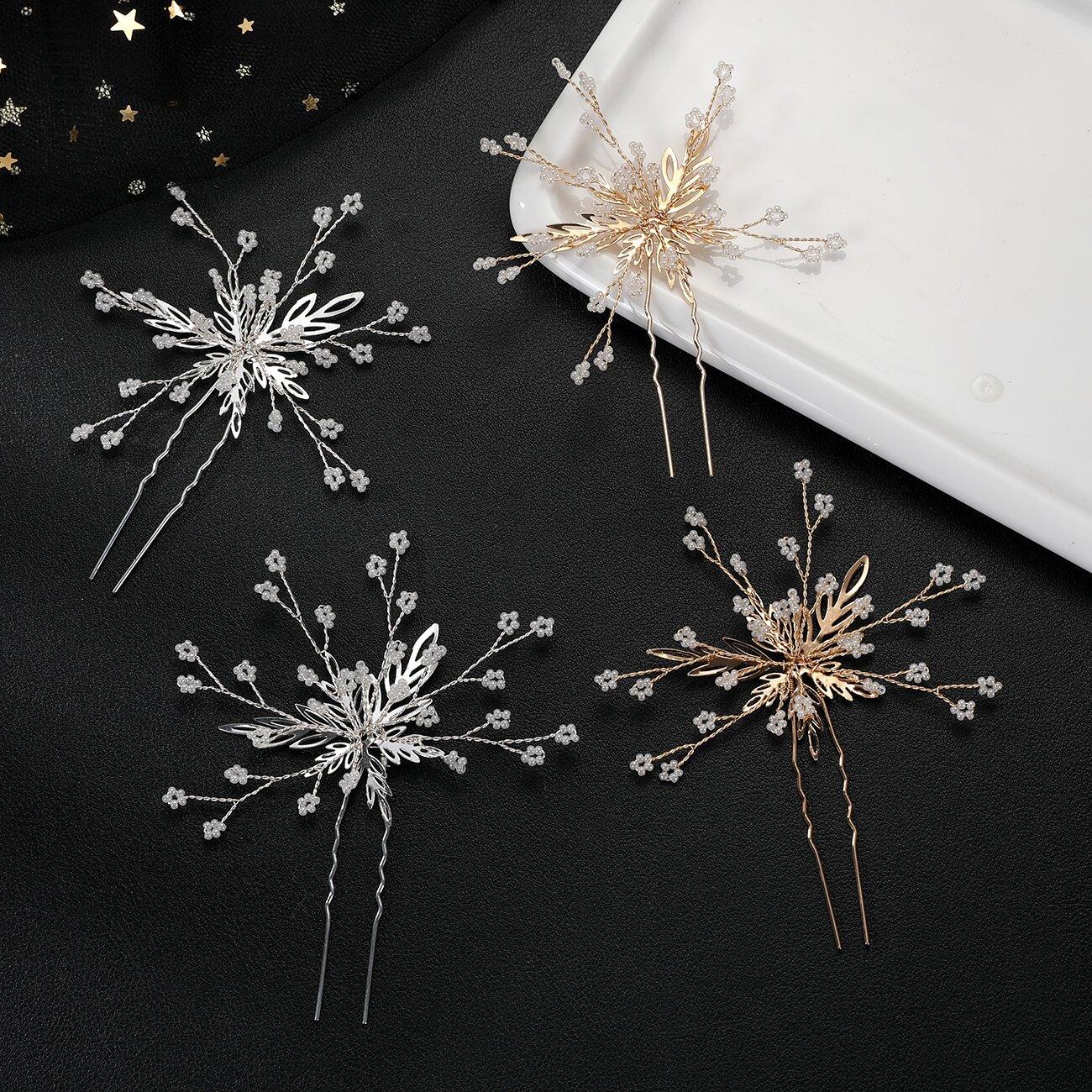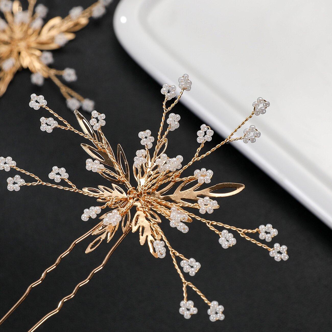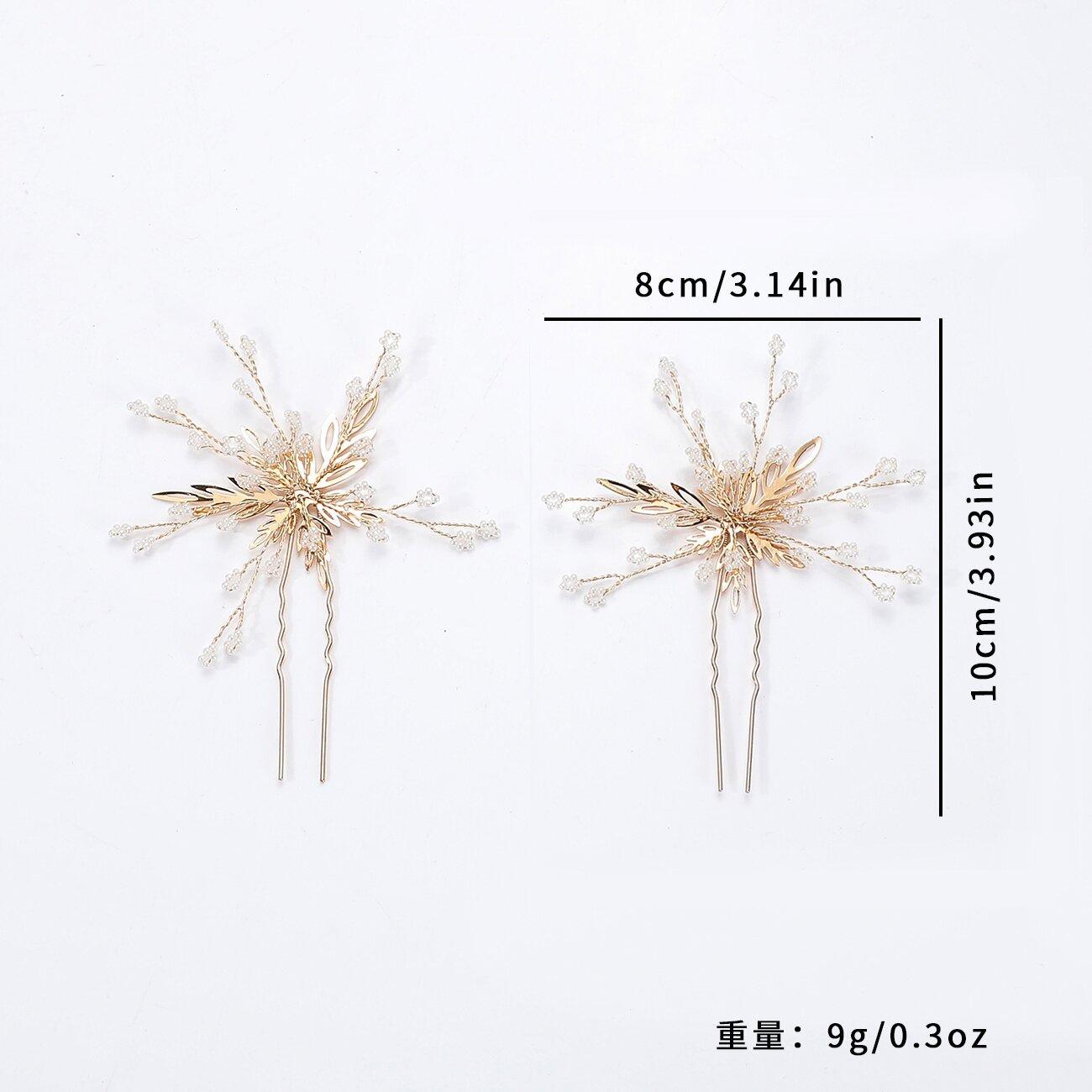 Horquillas de bosque hechas a mano para mujer, estilo retro, con flores doradas, para vestido de novia, horquillas para el pelo Xiuhe, venta al por mayor