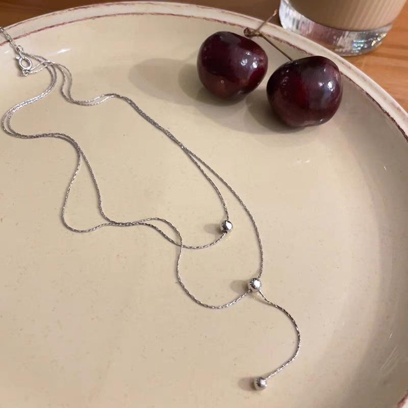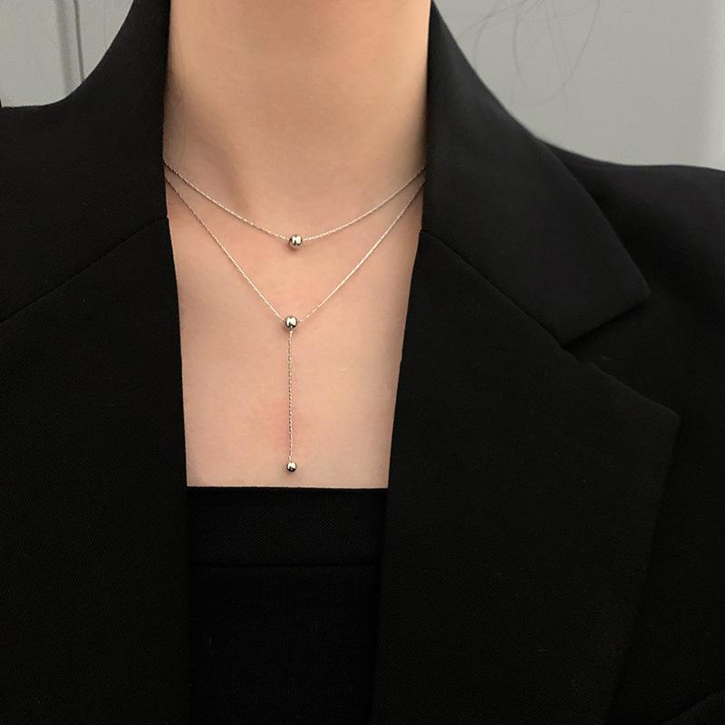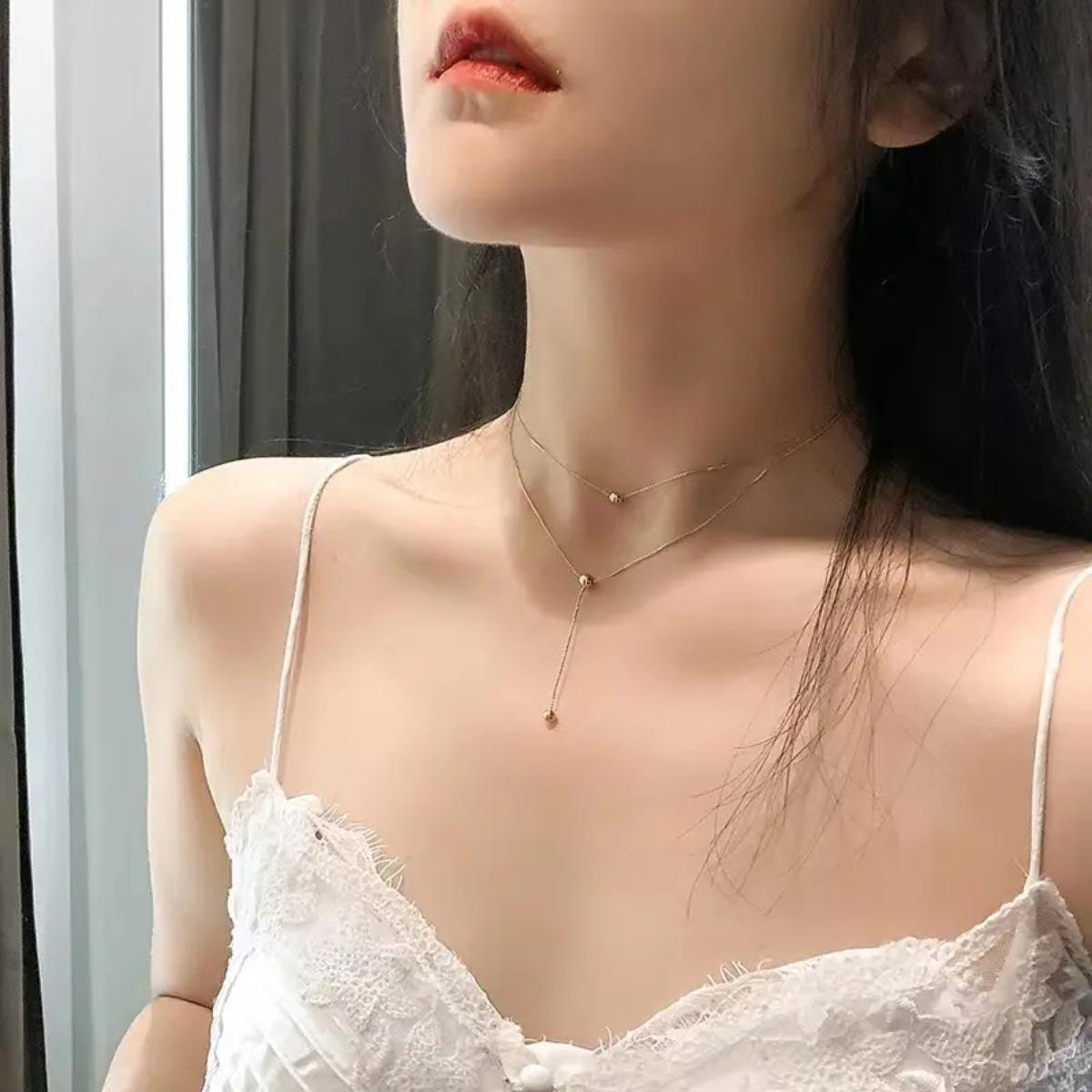 Collar de acero de titanio con borlas de bola sin color para baño, collar apilado de doble capa, accesorios de cadena de clavícula elegantes y sencillos.