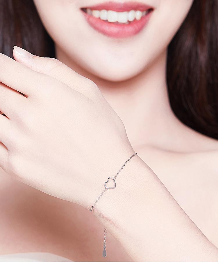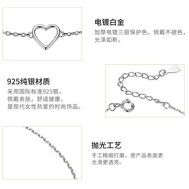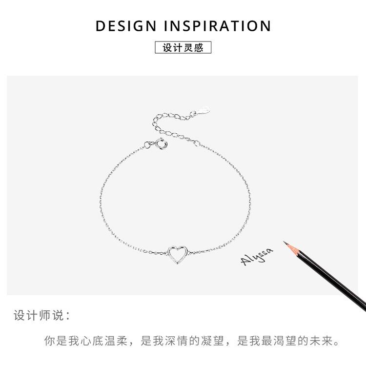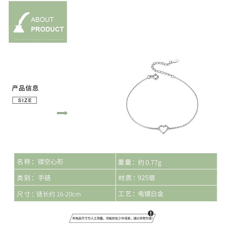 Pulsera de plata esterlina Aifule S925 con forma de corazón hueco, chapada en platino, pulsera de moda sencilla, joyería europea y americana, entrega de una sola pieza