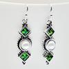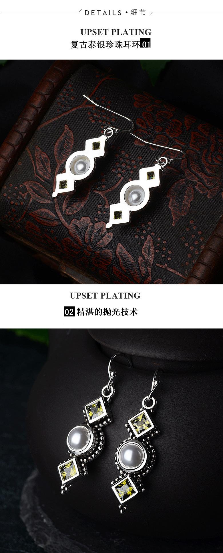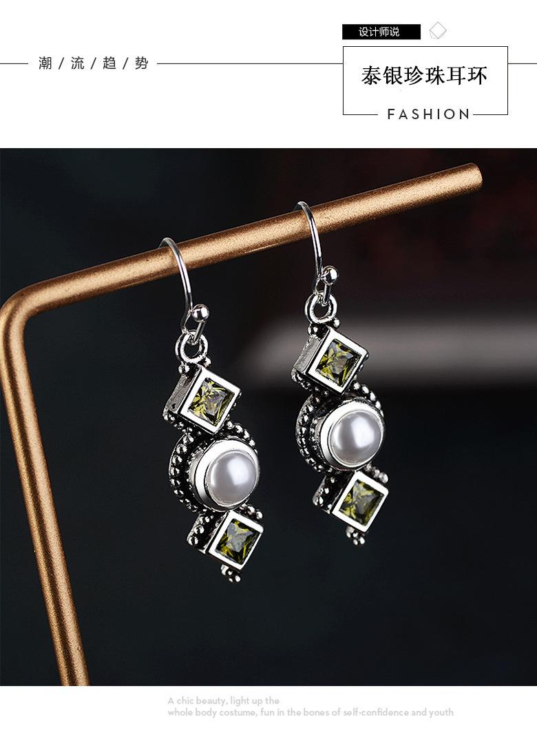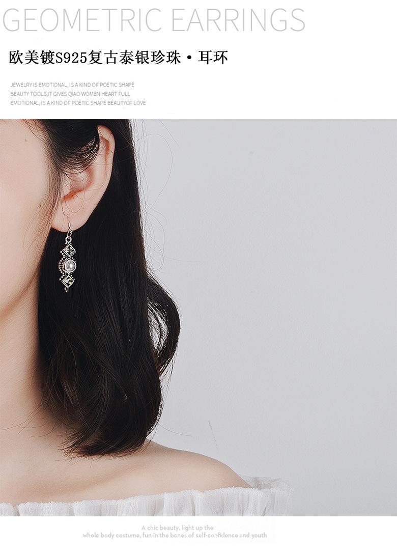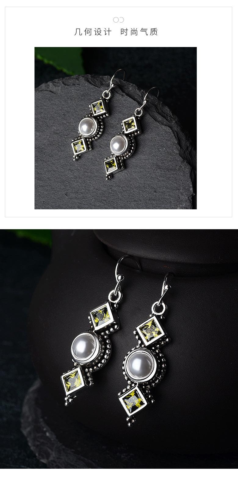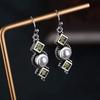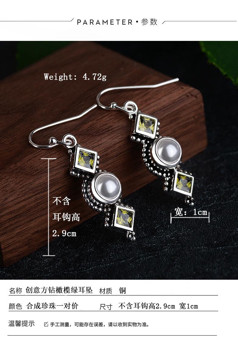 Pendientes Zhenrong con perlas de plata tailandesa vintage S925 chapadas en Europa y América, pendientes largos creativos de diamantes cuadrados verde oliva para mujer