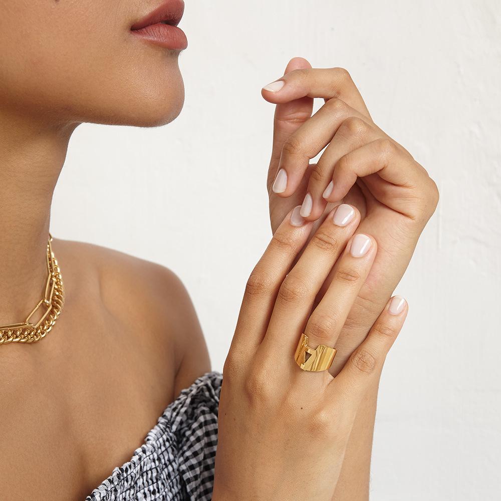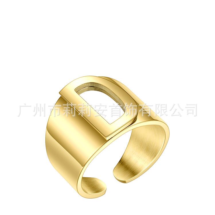 Anillo abierto con letras de personalidad europea y americana de acero de titanio chapado en oro de 18 quilates, estilo ins de temperamento de moda R204047