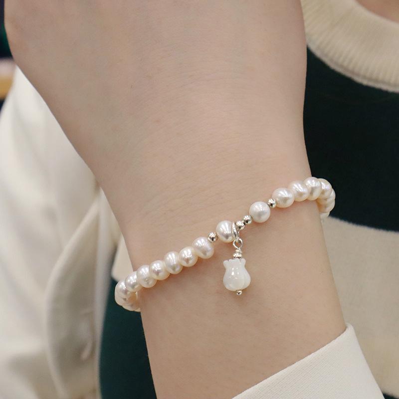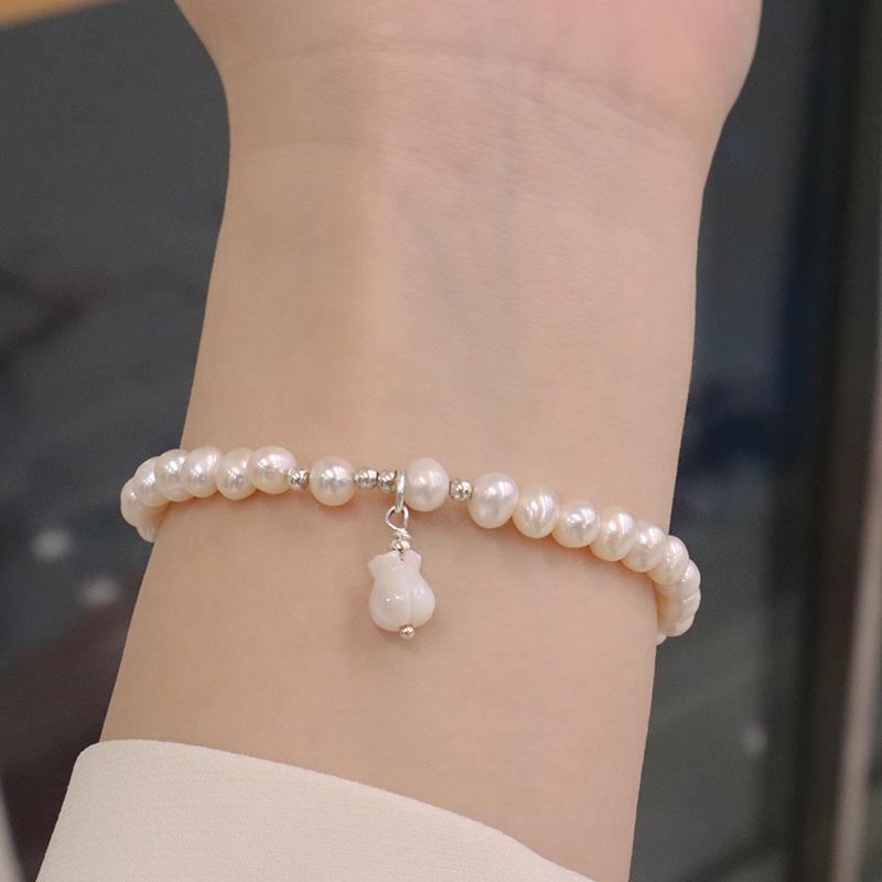 Pulsera de Perla Natural estilo ins Pulsera de Cristal Super Flash Shihua Sencilla para Mujer con Colgante de Flor de Concha Venta al por Mayor