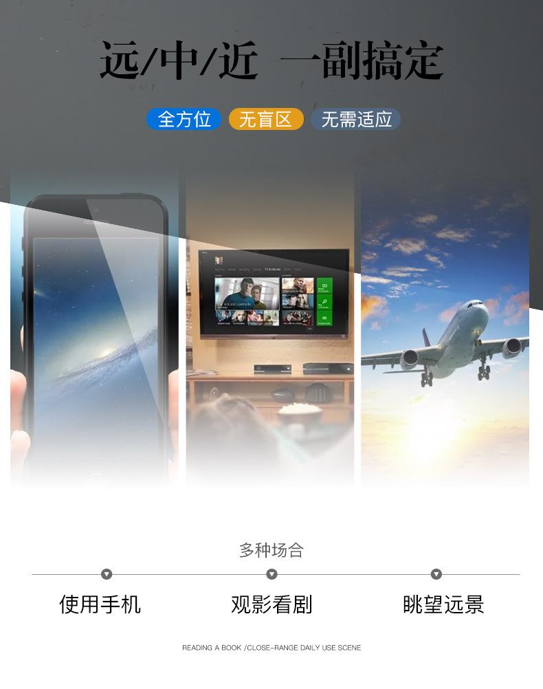 6. No use gafas durante ejercicio intenso para evitar impactos fuertes que puedan romper las lentes y causar daños en los ojos y la cara. No use lentes desgastados para evitar que la dispersión de la luz cause pérdida de visión. No mire directamente al sol ni a una luz intensa y deslumbrante para evitar daños oculares.