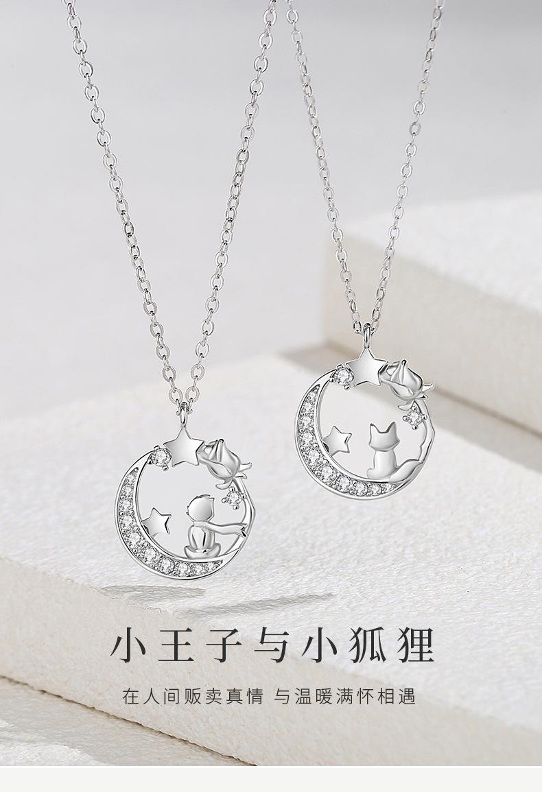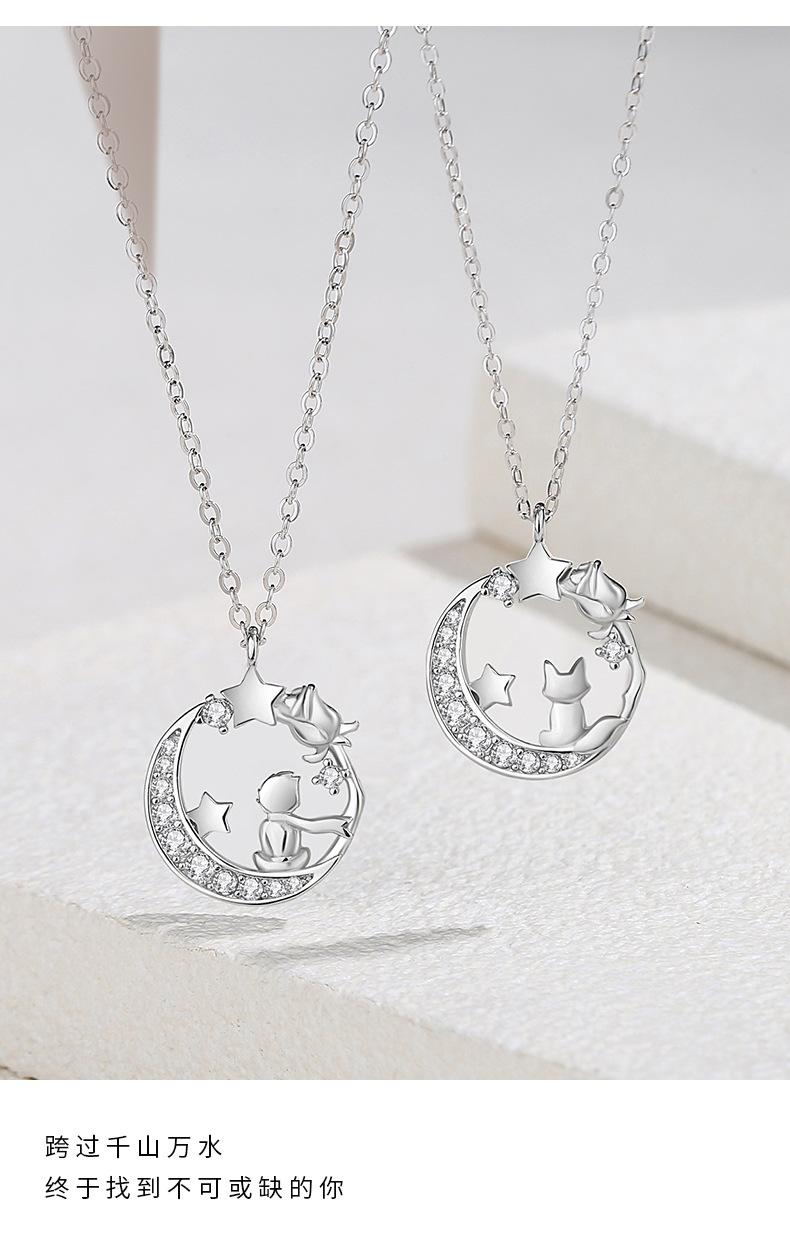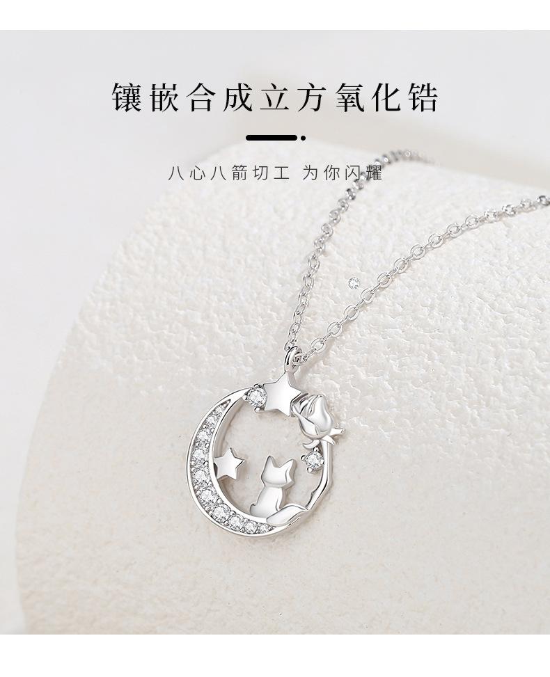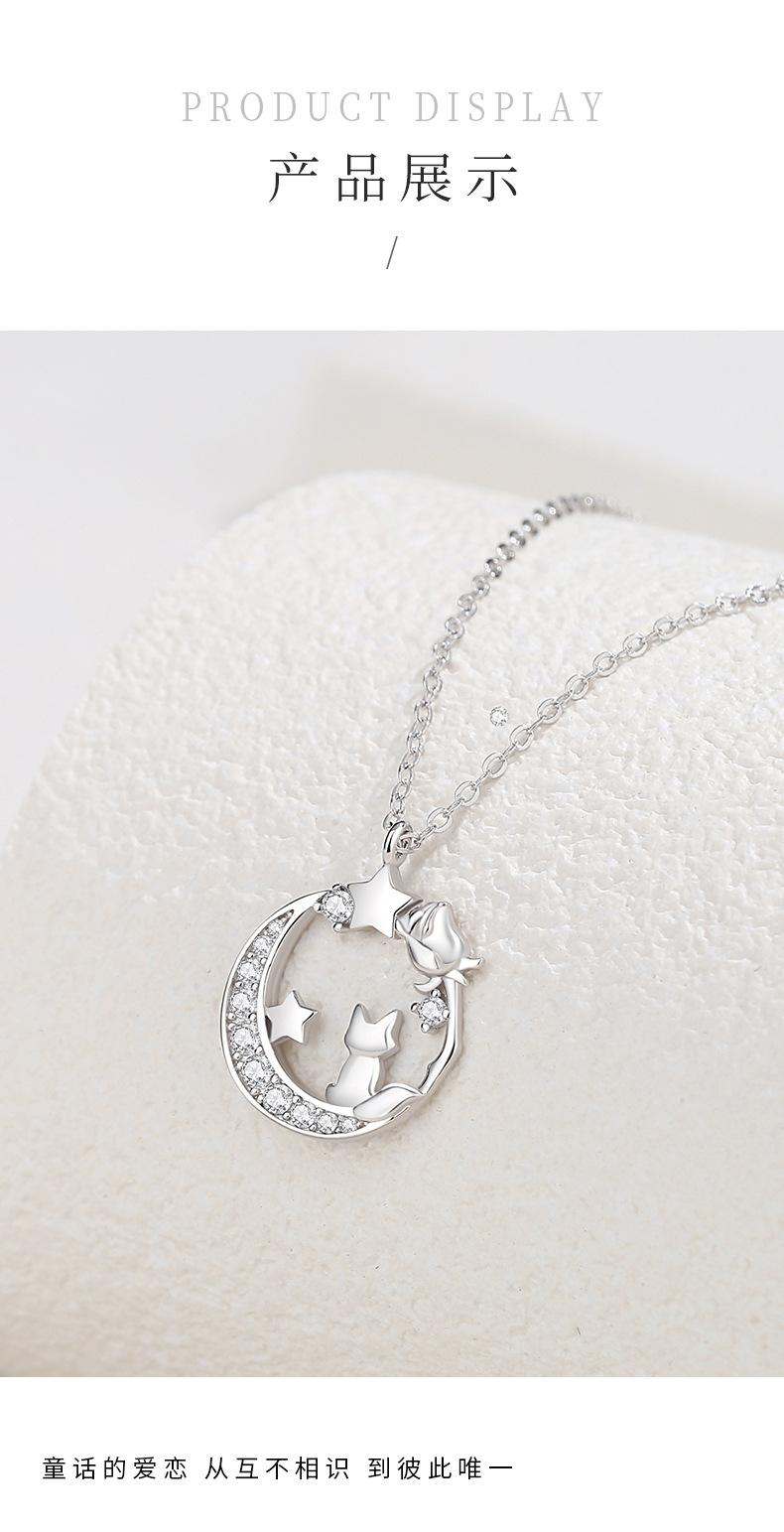 Diseño original luna El Principito y el Zorro collar plata esterlina nicho novias estrella Luna cadena clavicular regalo 520