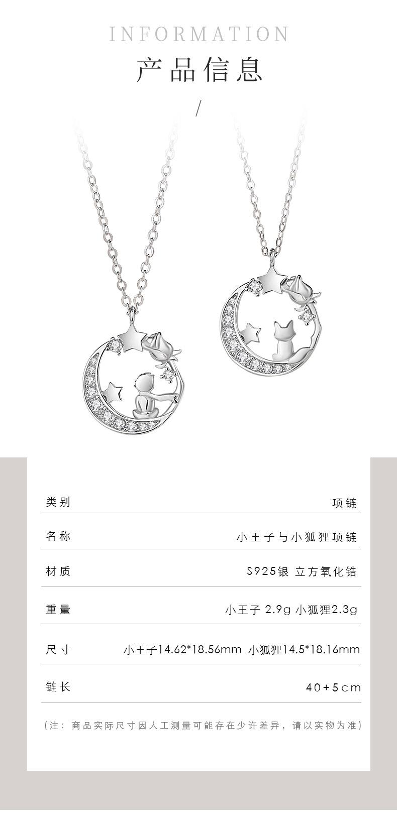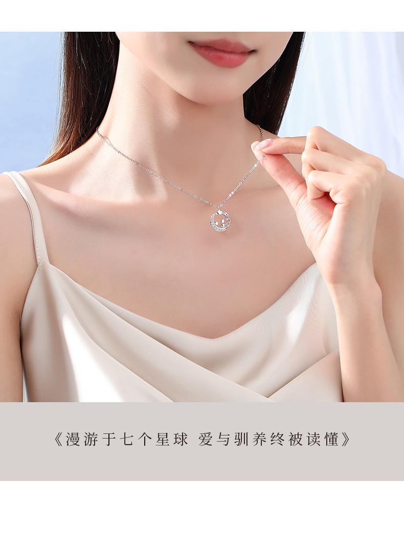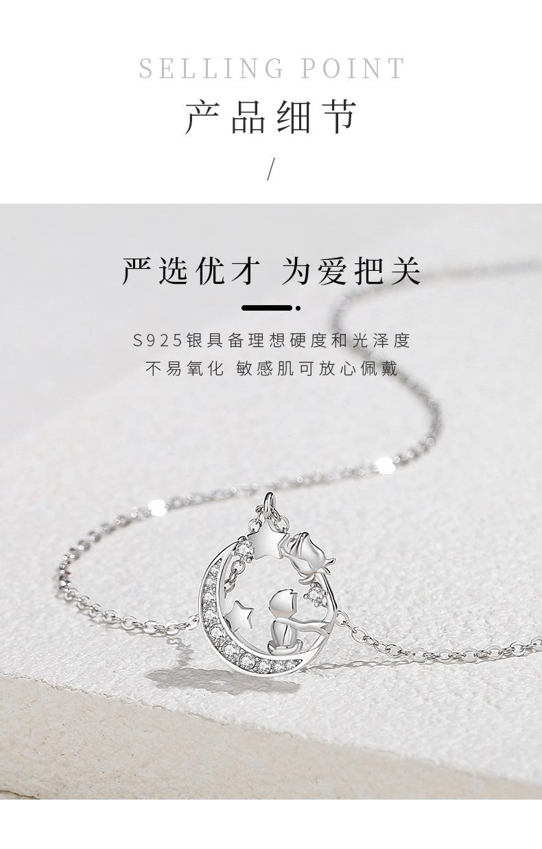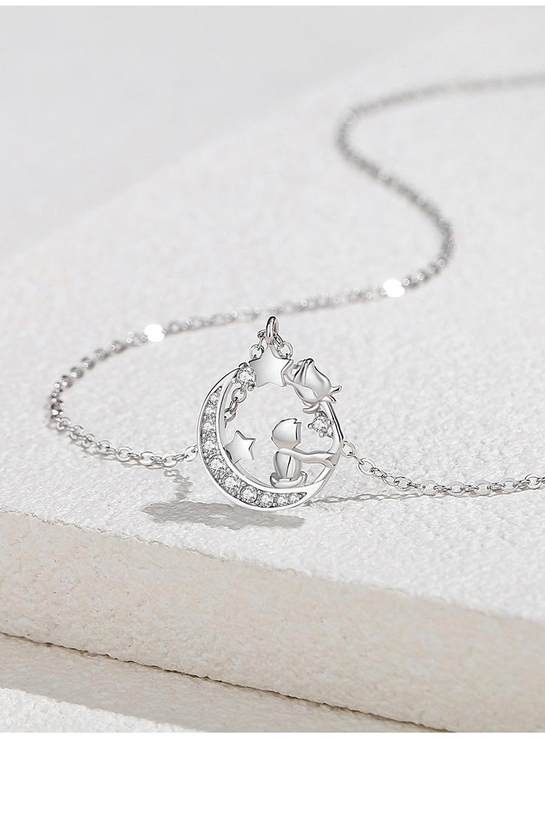 Diseño original luna El Principito y el Zorro collar plata esterlina nicho novias estrella Luna cadena clavicular regalo 520