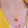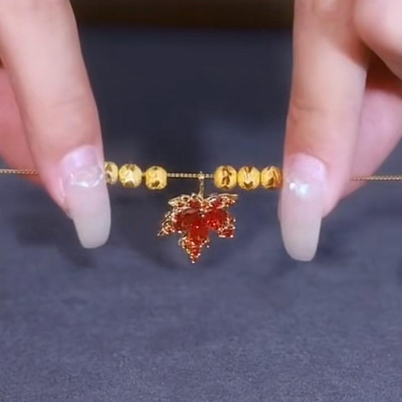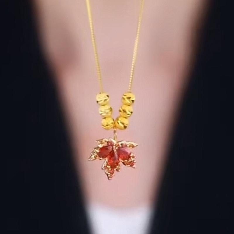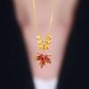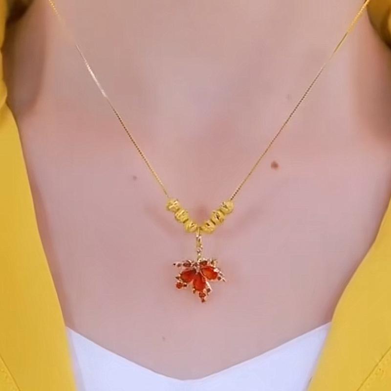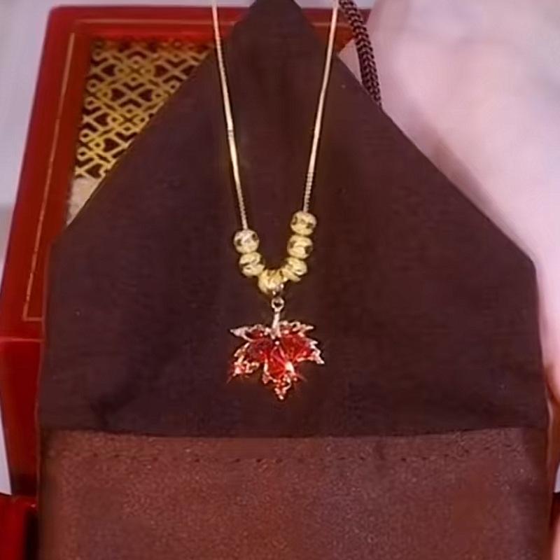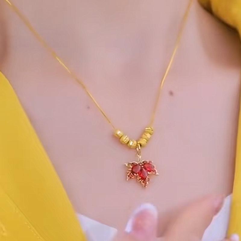 Collar con colgante de hoja de arce roja con diamantes de moda, cadena universal para niñas, accesorios de acero de titanio, collar con personalidad.