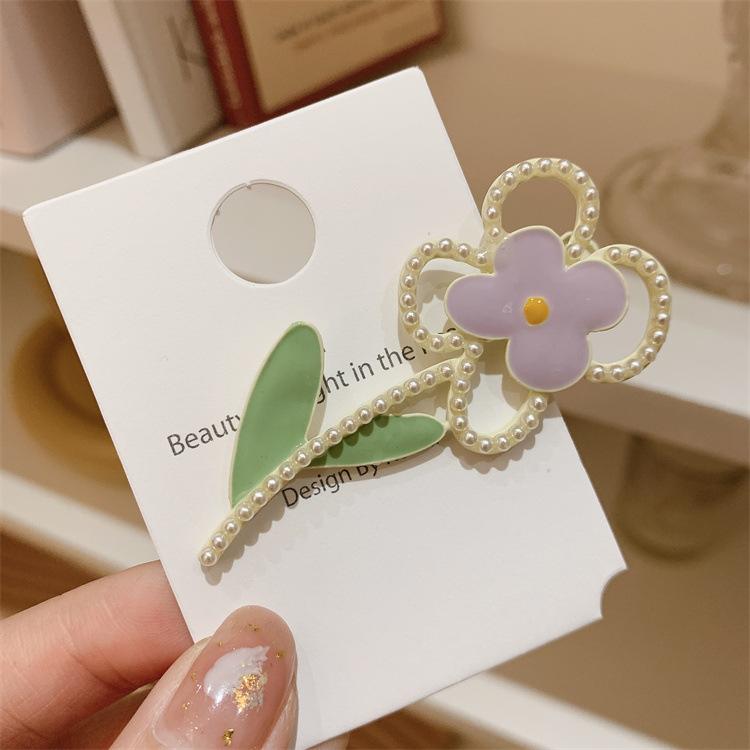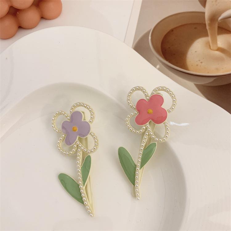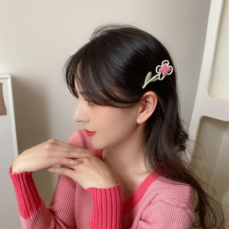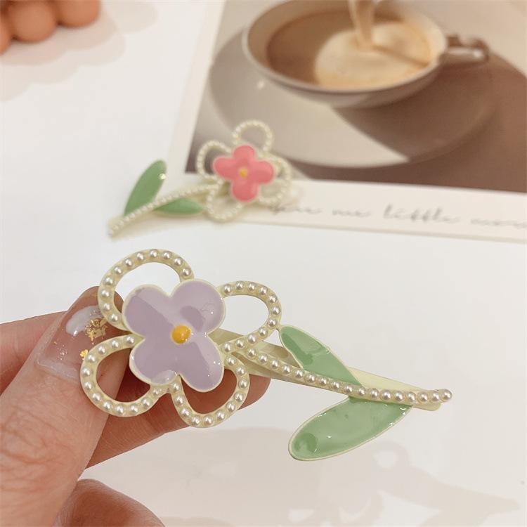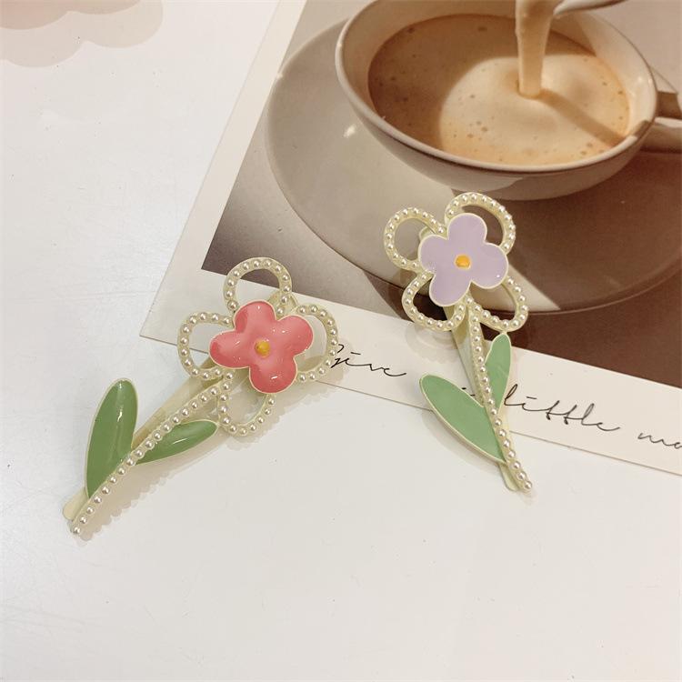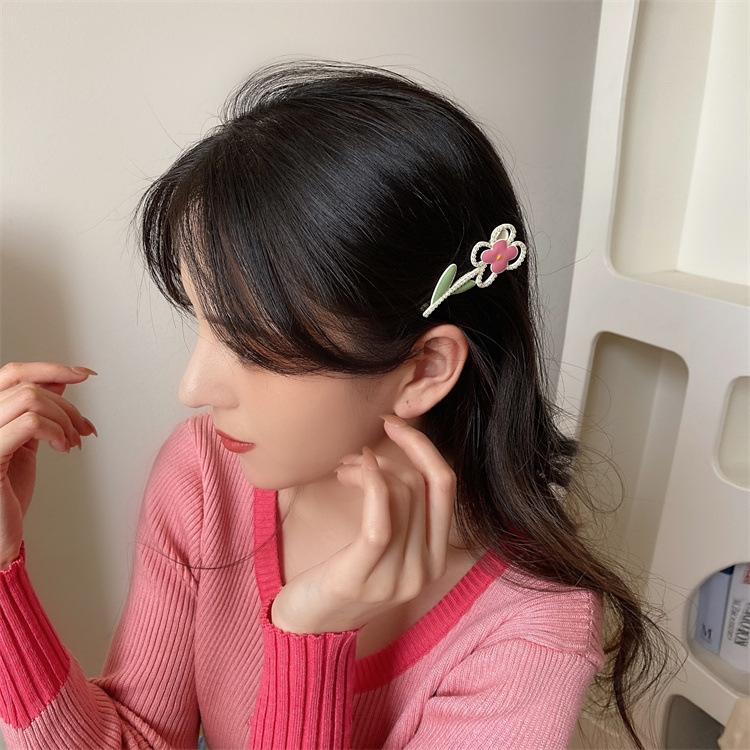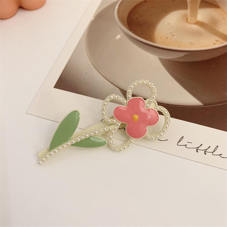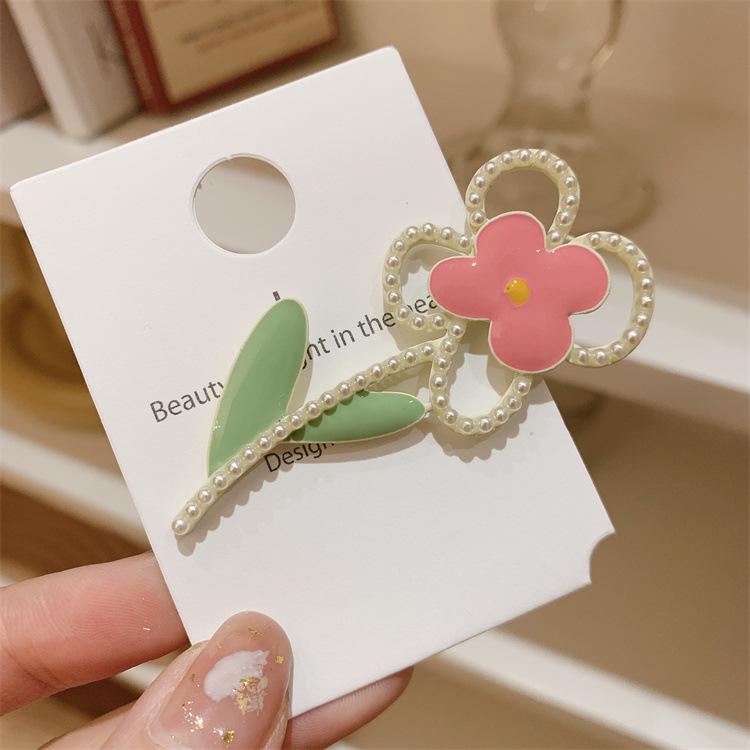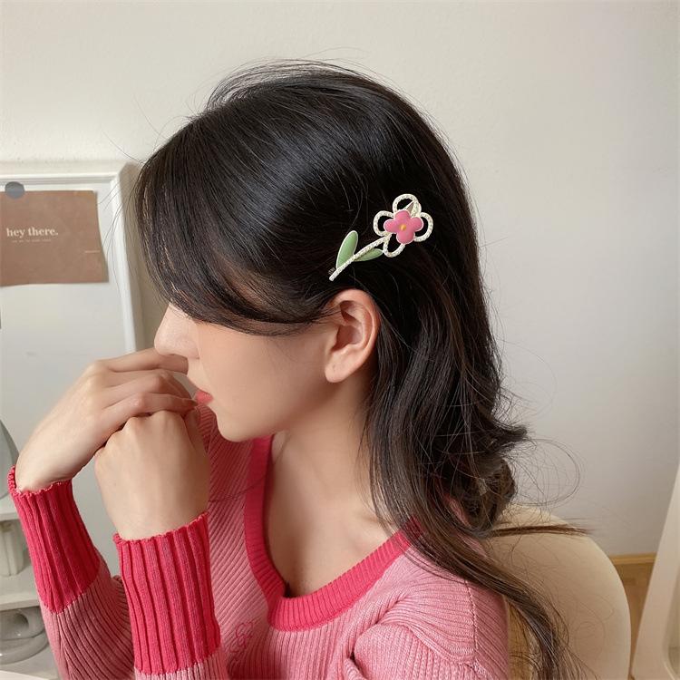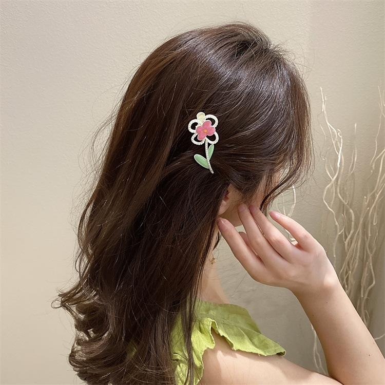 Verano 2022 Nuevo Dulce Flor pasador niña elegante flequillo lateral clip para el cabello tocado pico de pato