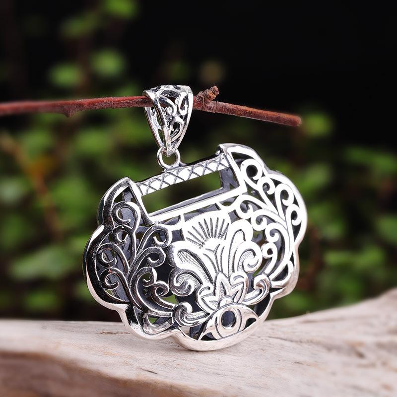 El método consiste en fundir una mezcla de plata y azufre sobre la joyería de plata, formando una superficie vítrea. La capa suelta de plata negra contrasta marcadamente con el blanco brillante de la plata blanca, creando un efecto visual especial. Gracias a su tratamiento antienvejecimiento, la joyería de plata negra no solo conserva su color durante mucho tiempo, sino que también mejora considerablemente la dureza de la superficie, con una textura y un color únicos, y la joyería luce tosca y simple. Este proceso de tratamiento de la joyería de plata tailandesa también se denomina "azulado quemado". Tras el tratamiento "azulado quemado", la joyería de plata revela un estilo sencillo, un color mate, un aspecto antiguo y una atmósfera antigua, muy apreciada por la moda. La mayoría de estas joyas siguen las sencillas técnicas artísticas de finales del siglo XIII y se refinan con técnicas especiales para obtener un color y una textura únicos. Sus técnicas especiales de tallado e incrustación convierten cada joya de plata en un tesoro exótico y único. Las gemas incrustadas con plata tailandesa son principalmente cristal, oro negro y granate. El rojo y el negro son los colores principales de las gemas con incrustaciones de plata tailandesa, que pueden emitir una hermosa luz bajo el sol.