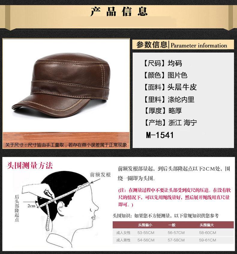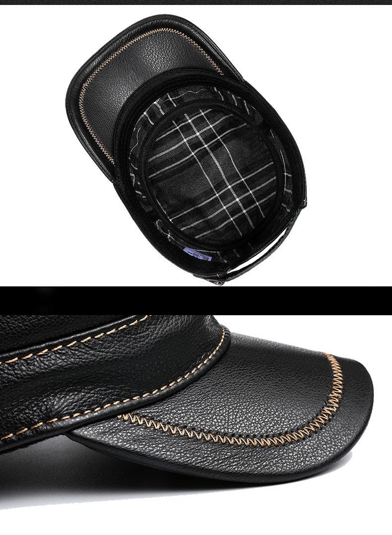 Sombrero de Cuero Gorra Nueva de Cuero de Vaca Ajustable para Hombres de Mediana Edad Parasol Simple Primavera y Otoño Sencillo