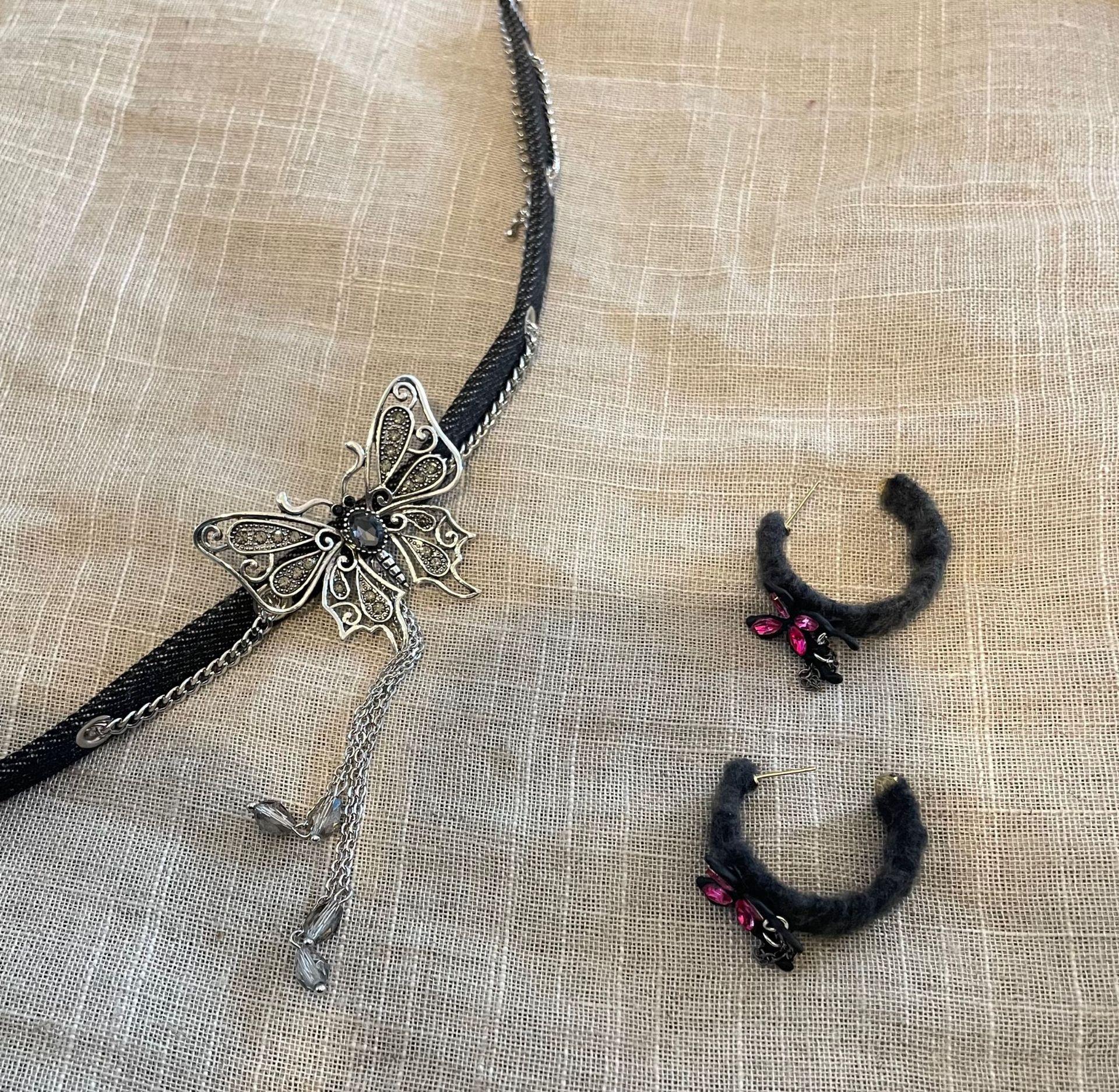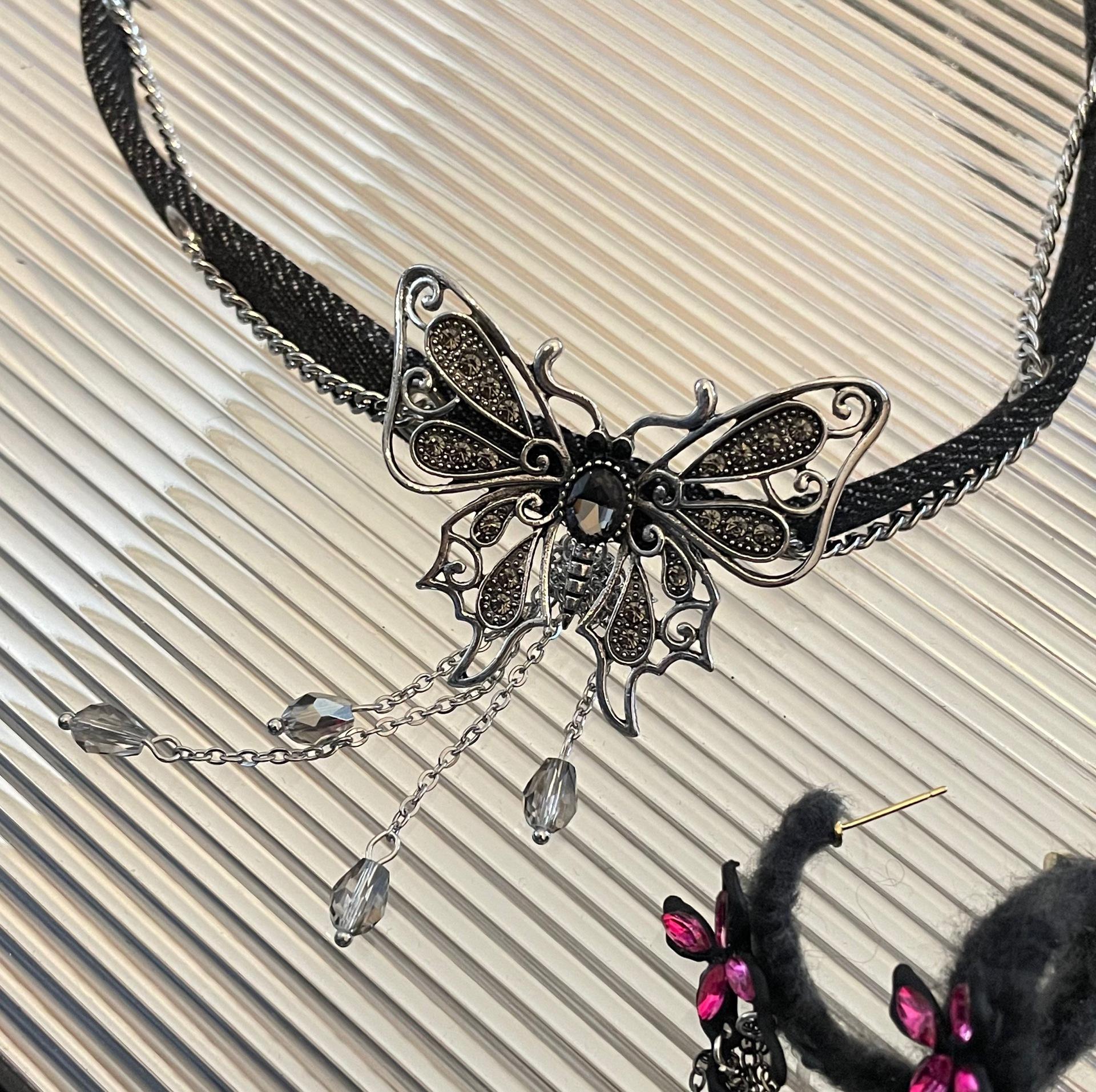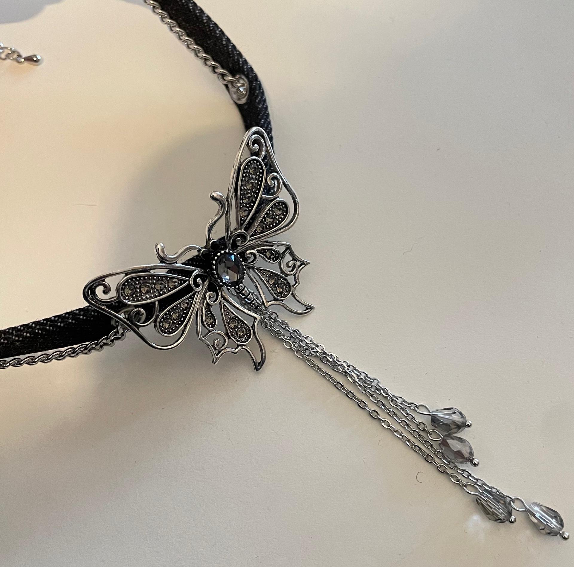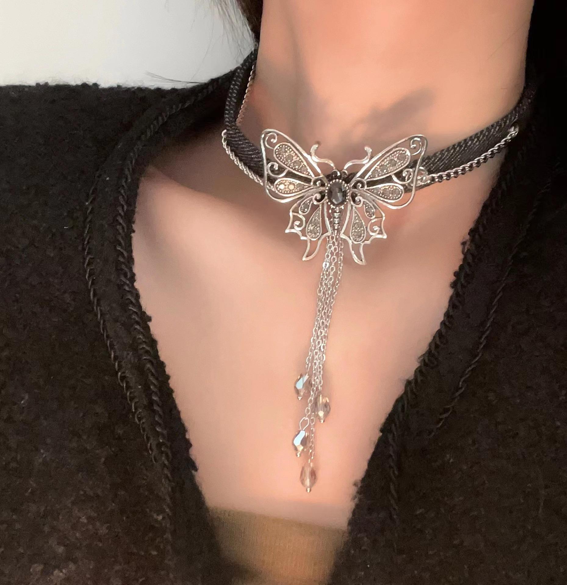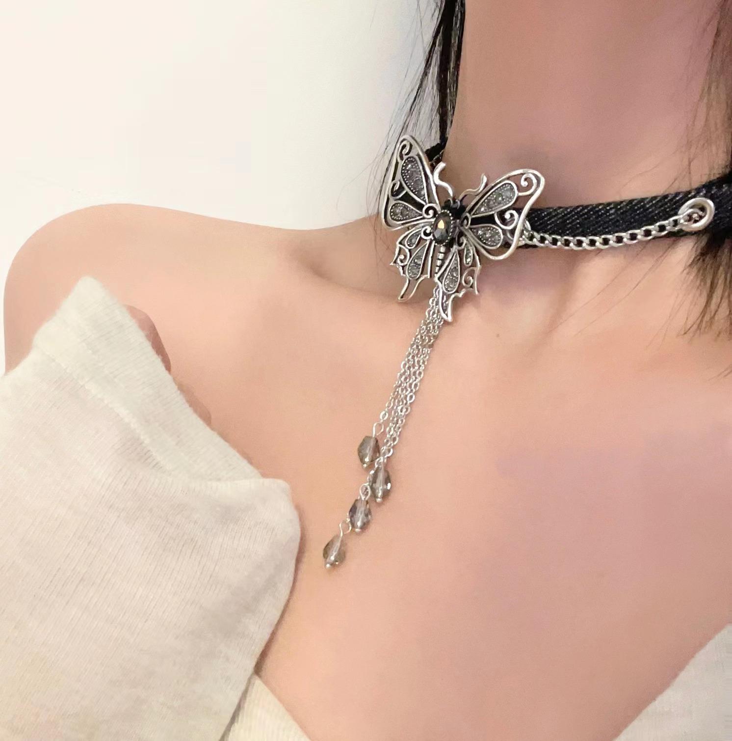 Gargantilla de cadena vaquera con cuello de borla de mariposa hueca para chica sexy, collar de clavícula de alta calidad con nicho que combina con todo