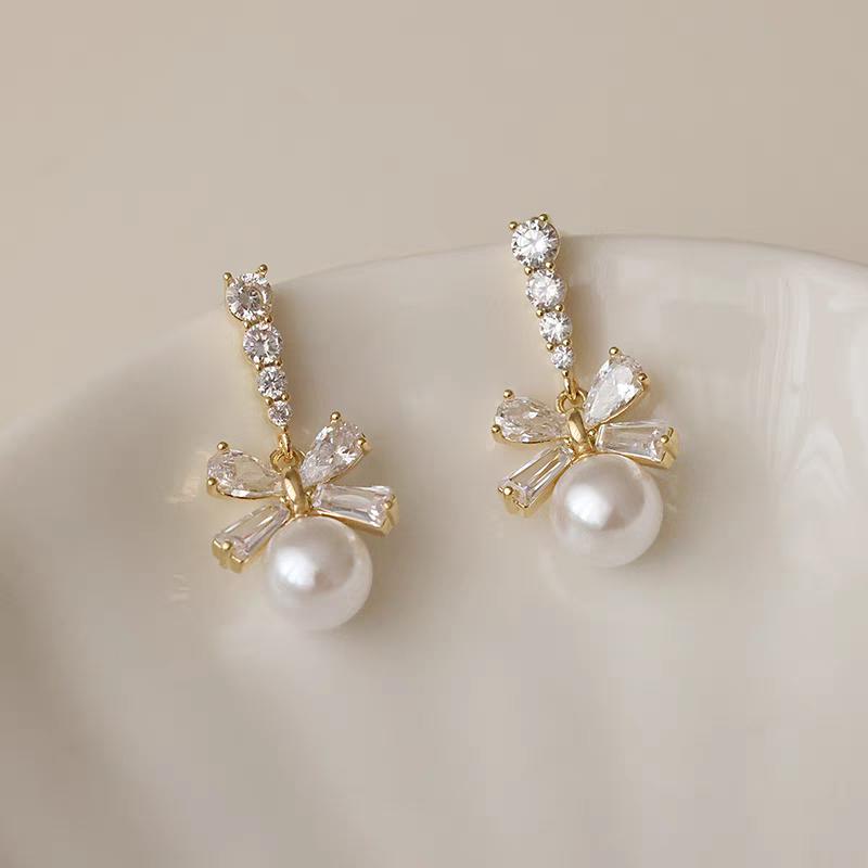 Aretes de Lazo de Zirconia Perla para Mujer Nuevos Aretes de Diseño Nicho Modernos Joyería Aretes