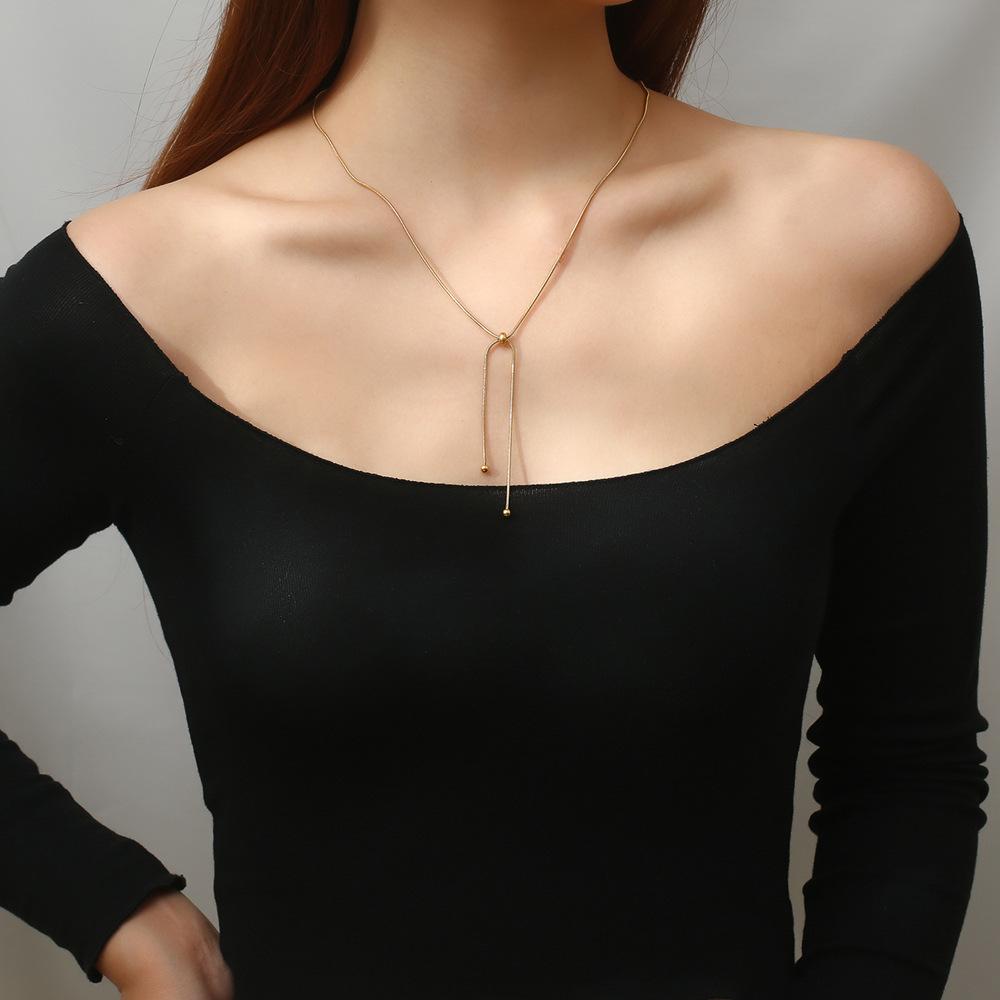 Collar de cadena de hueso de serpiente ajustable con diseño europeo y americano para mujer, cadena de suéter de acero de titanio combinable sencilla, joyería