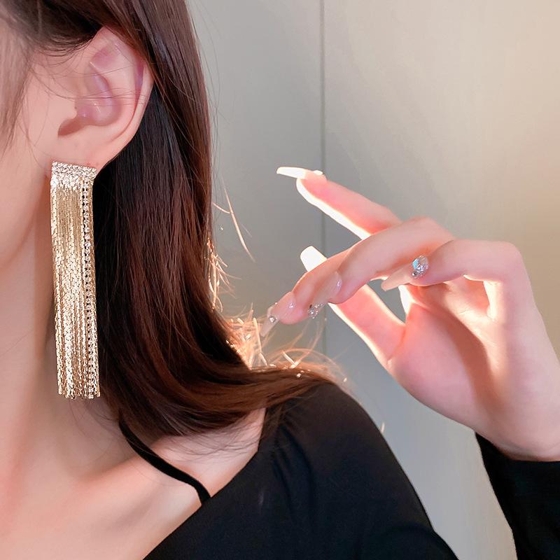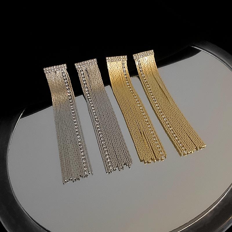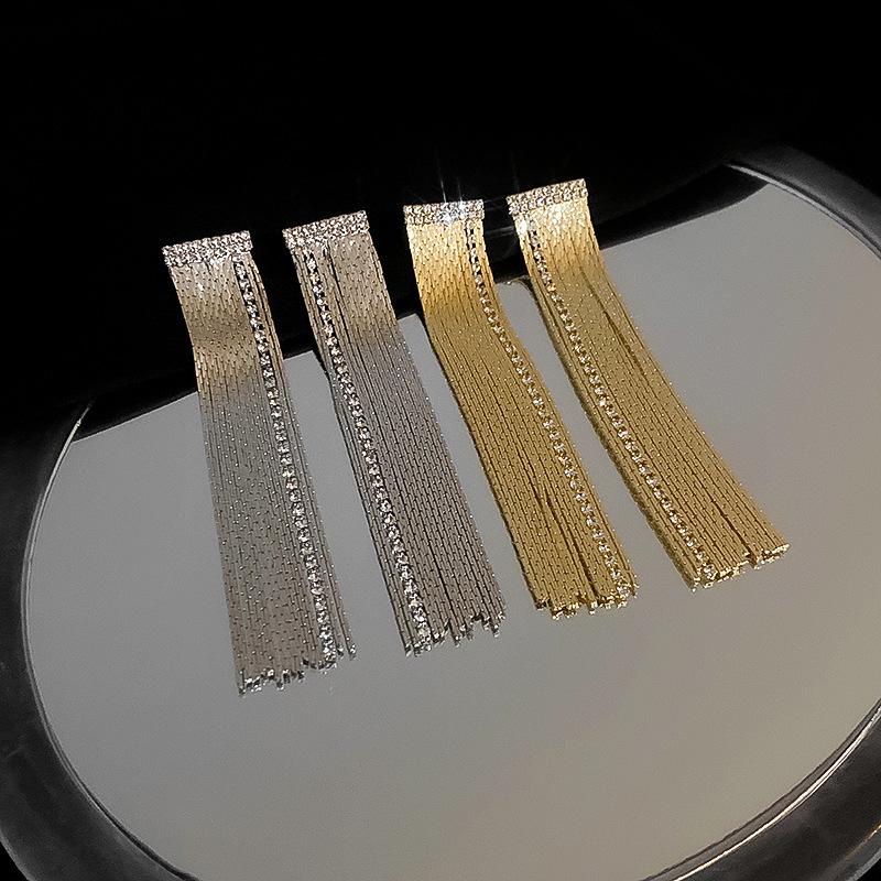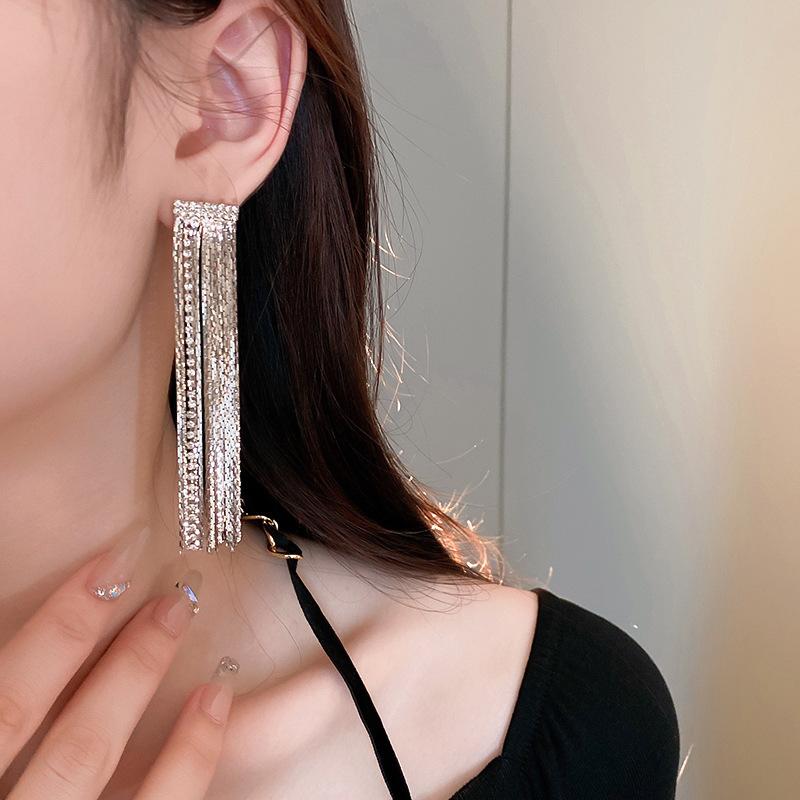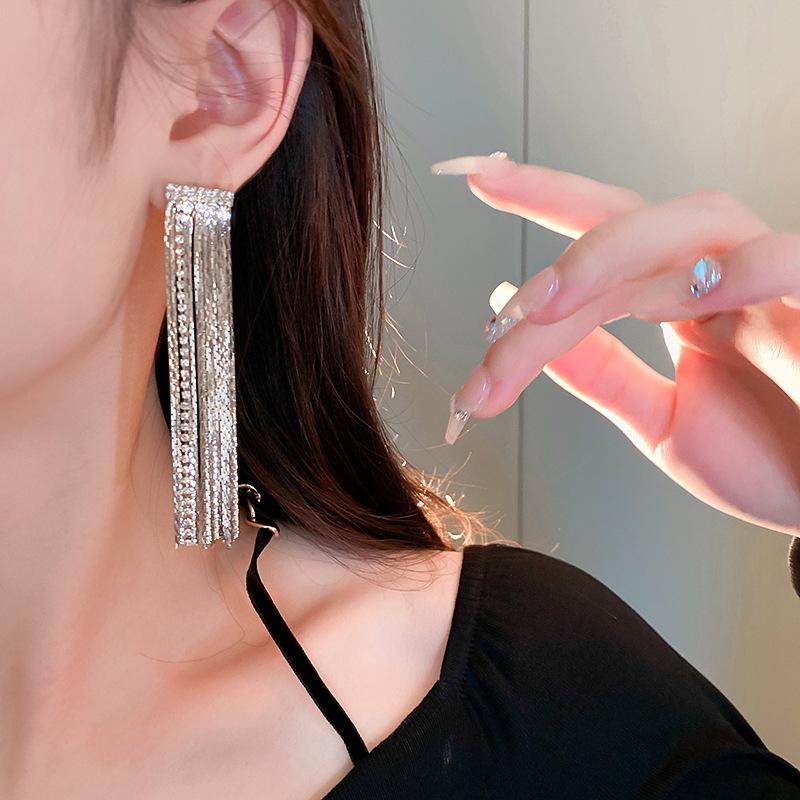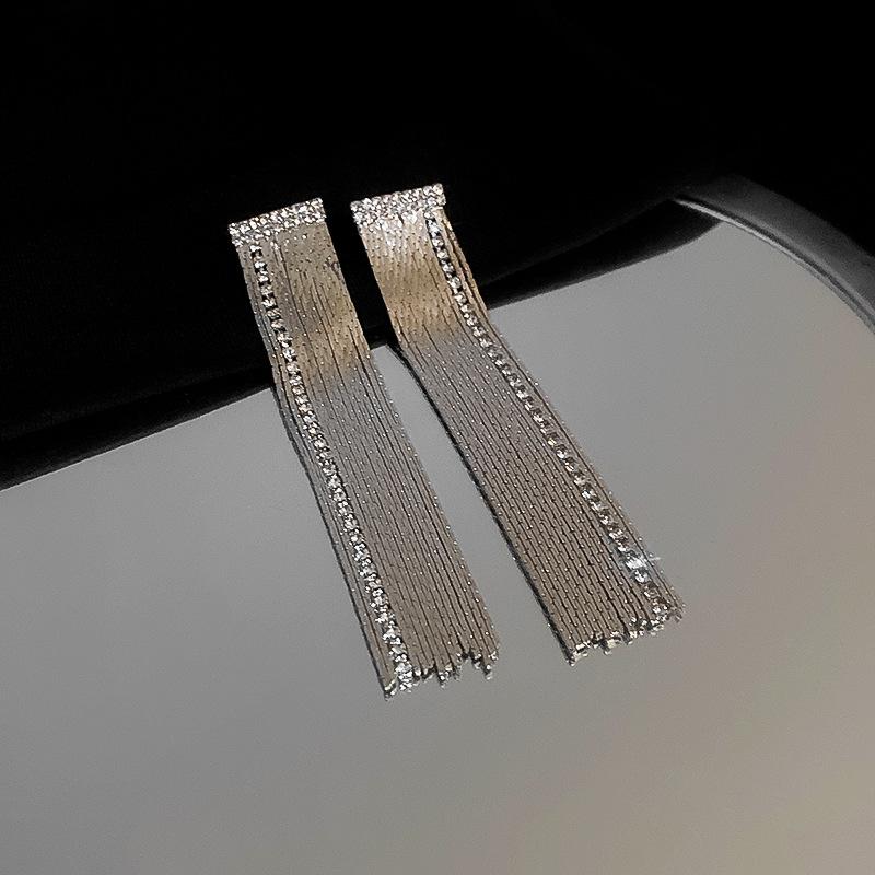Pendientes de borlas cuadradas con diamantes y alfiler de plata, elegantes y combinables con todo tipo de celebridades de Internet, nuevos pendientes de lujo ligeros y de moda de Corea del Sur, venta al por mayor para mujeres